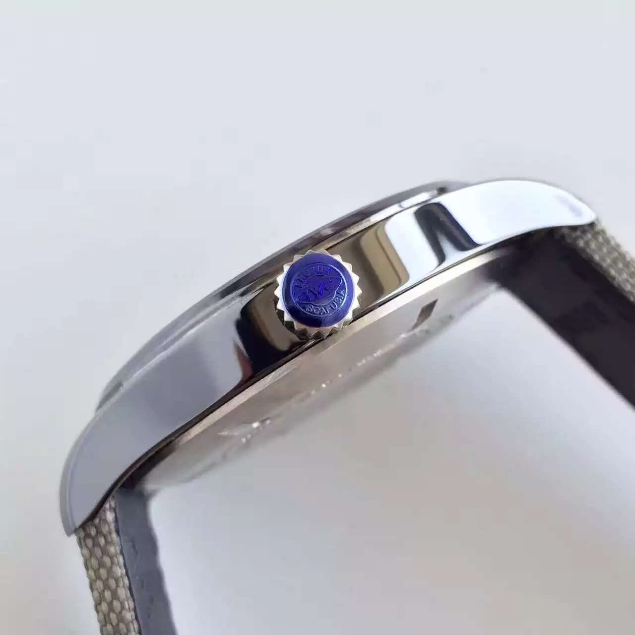 Многослойный зеленый нейлоновый ремешок, с простым (с помощью шипа) титановым замком IWC. |