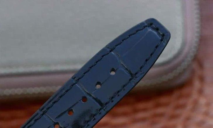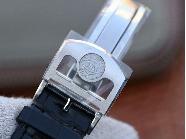 Черный кожаный ремешок, с двойной раскладывающейся стальной застежкой IWC. |