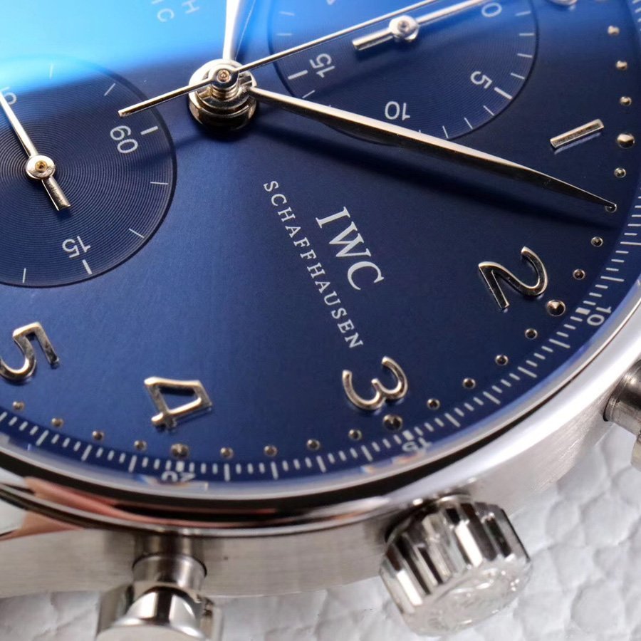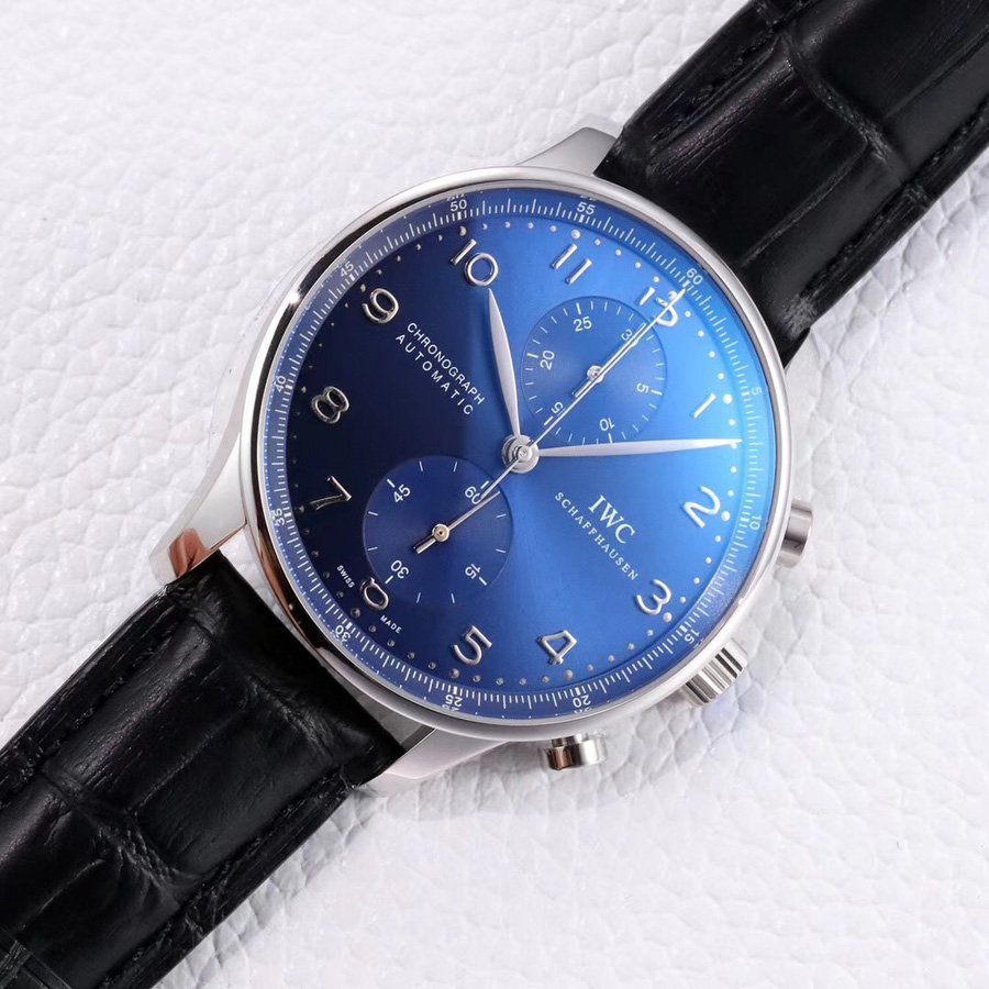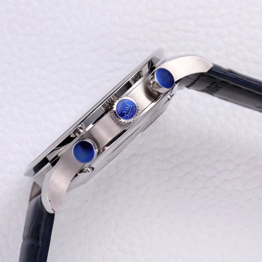 Синий, переливающийся. Накладные полированные арабские часовые индексы и классические стрелки. Малый минутный циферблат хронографа в отметке на 12:00 часов и циферблат малой секундной стрелки в отметке на 18.00 часов. |
