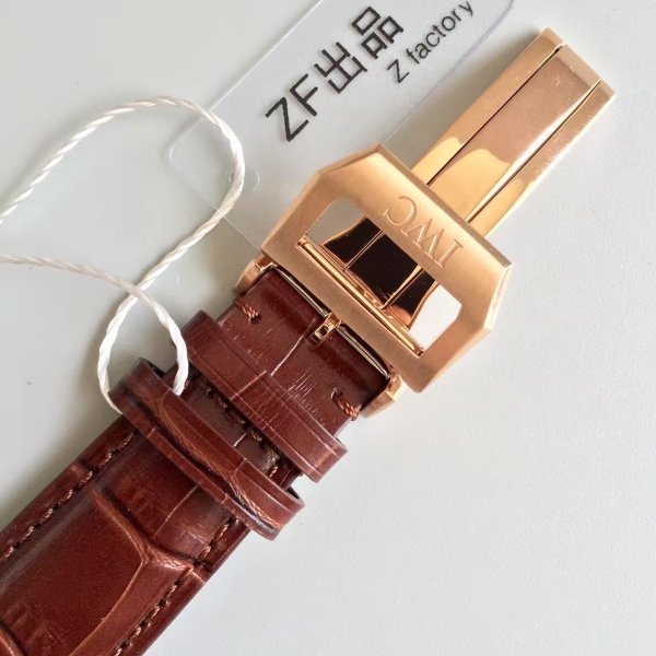 Коричневый кожаный ремешок, с двойной раскладывающейся позолоченной застежкой IWC. |