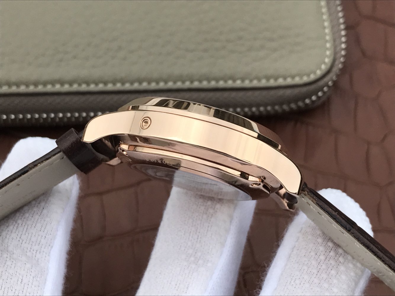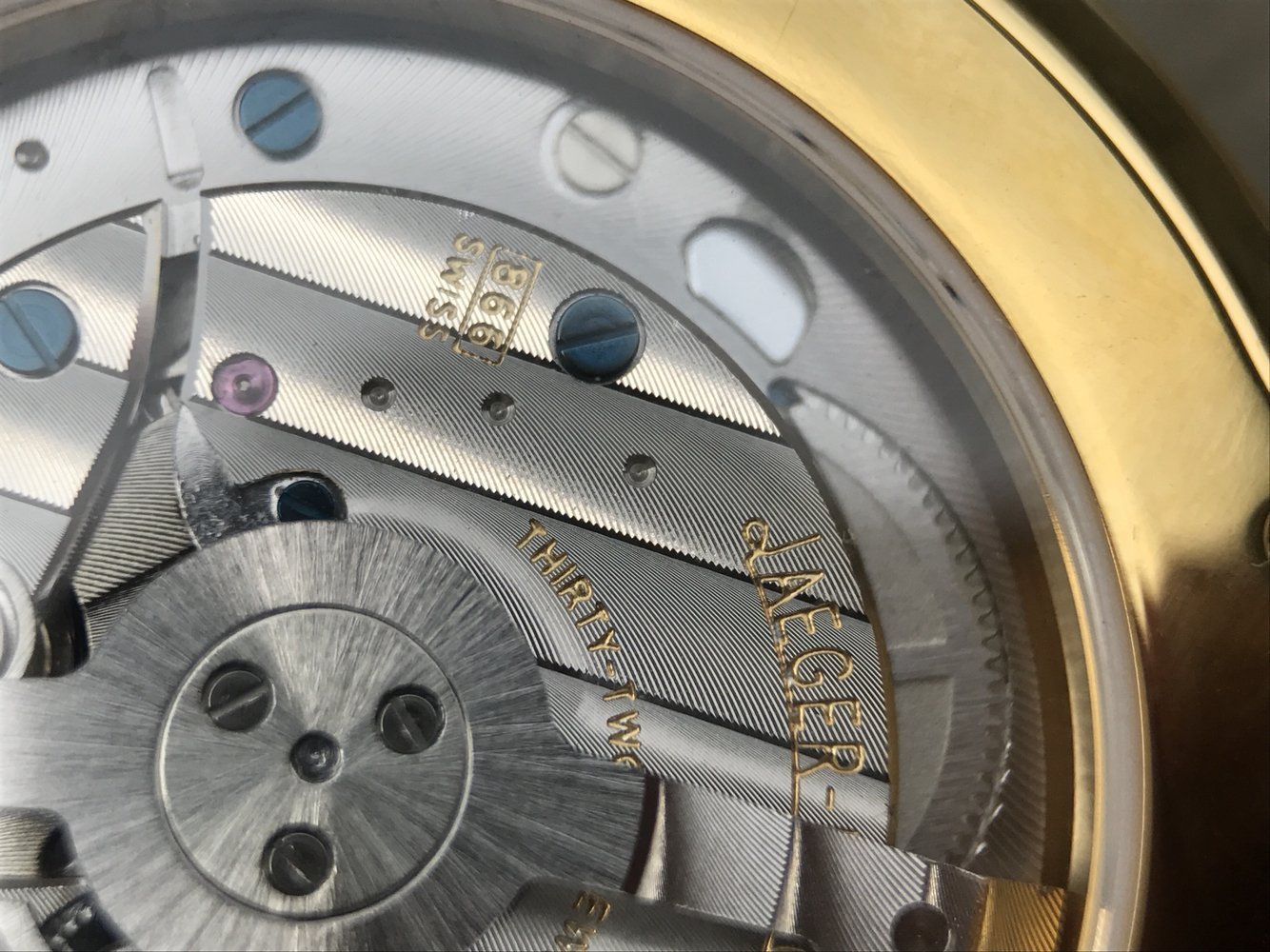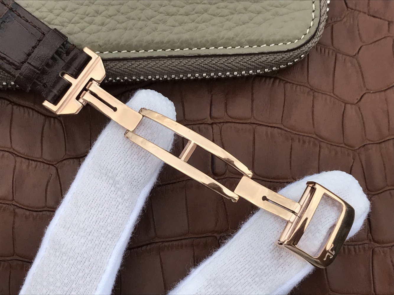 Коричневый (чёрный) кожаный ремешок, с простой (с помощью шипа) застежкой Jaeger-LeCoultre. |