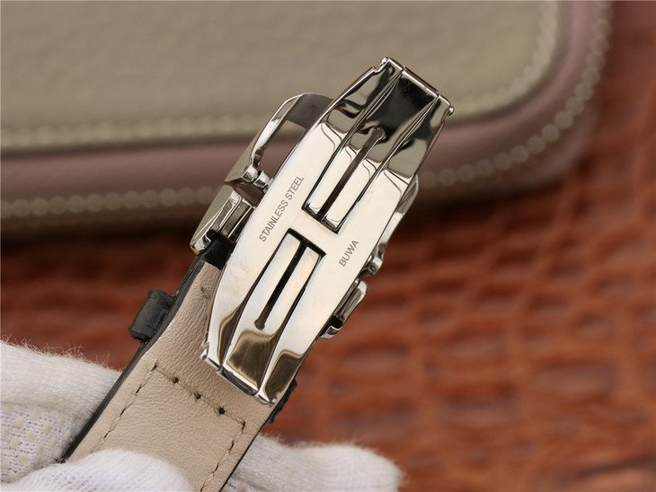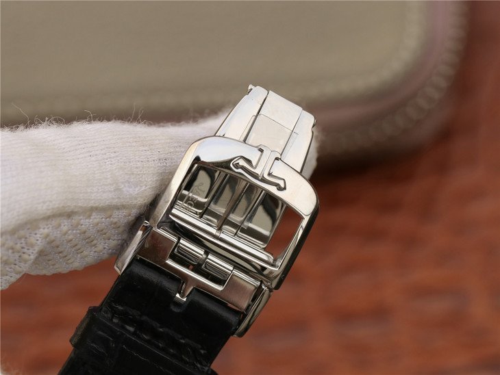 Чёрный кожаный ремешок, с двойной раскладывающейся застежкой Jaeger-LeCoultre. |