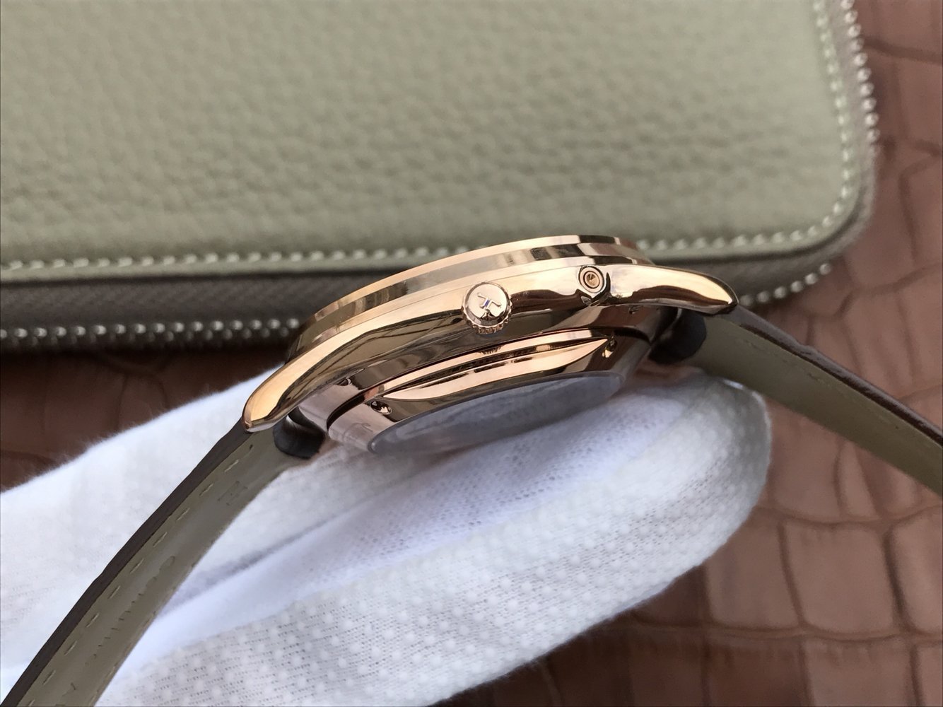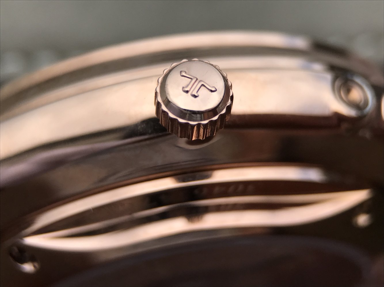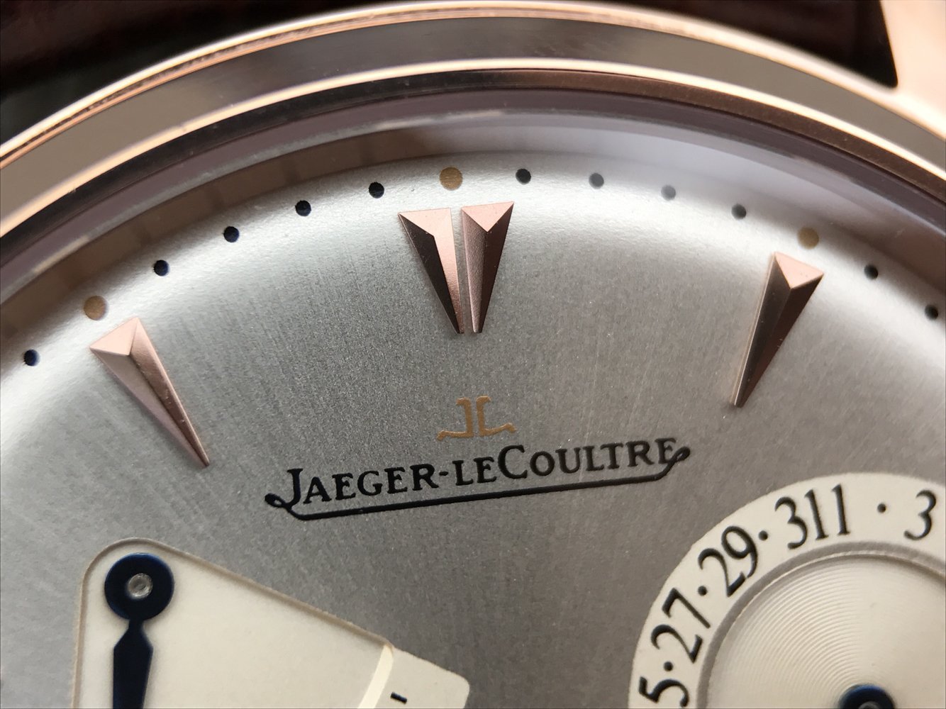 Коричневый кожаный ремешок, с двойной раскладывающейся позолоченной застежкой Jaeger-LeCoultre. |