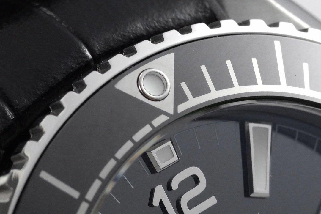 Черная керамика. Полированные часовые риски и 3D стрелки, покрытые люминесцентным составом Super LumiNova С1 + С3, зеленого и голубого свечения. Окно даты, расположенное в отметке на 15.00 часов |