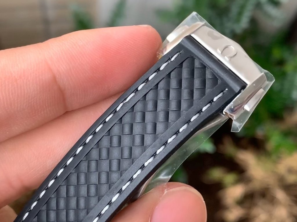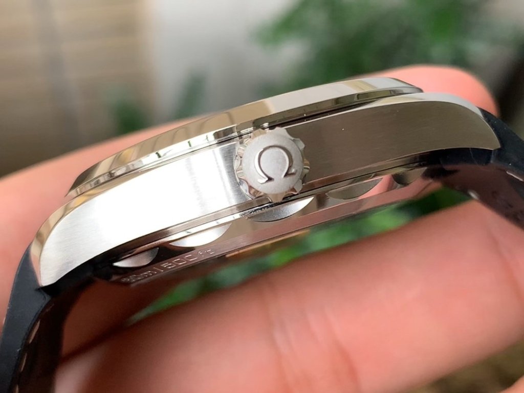 Чёрный каучуковый ремешок образца 2018 года, с двойной раскладывающейся застежкой Omega. Либо стальной браслет. |