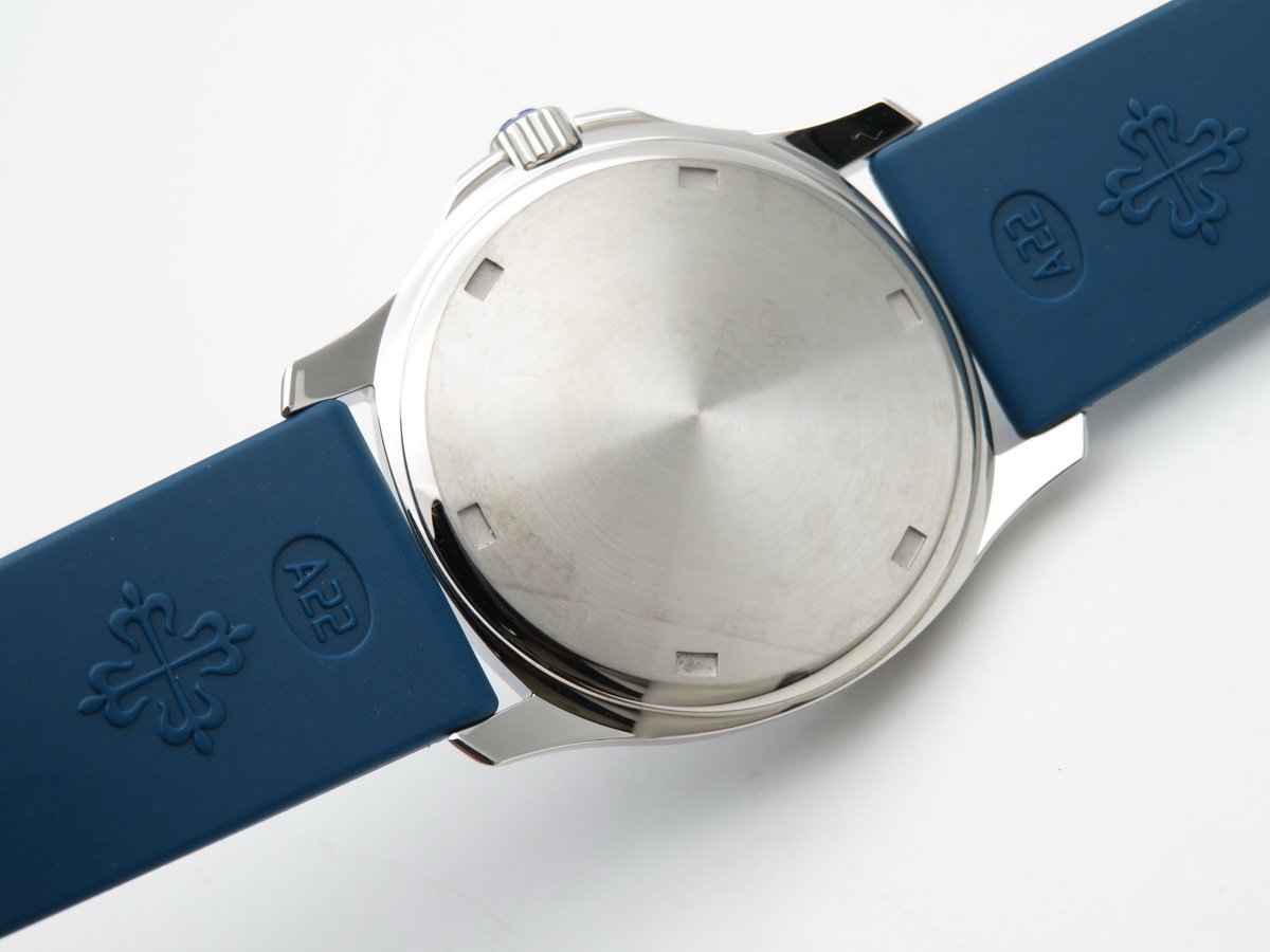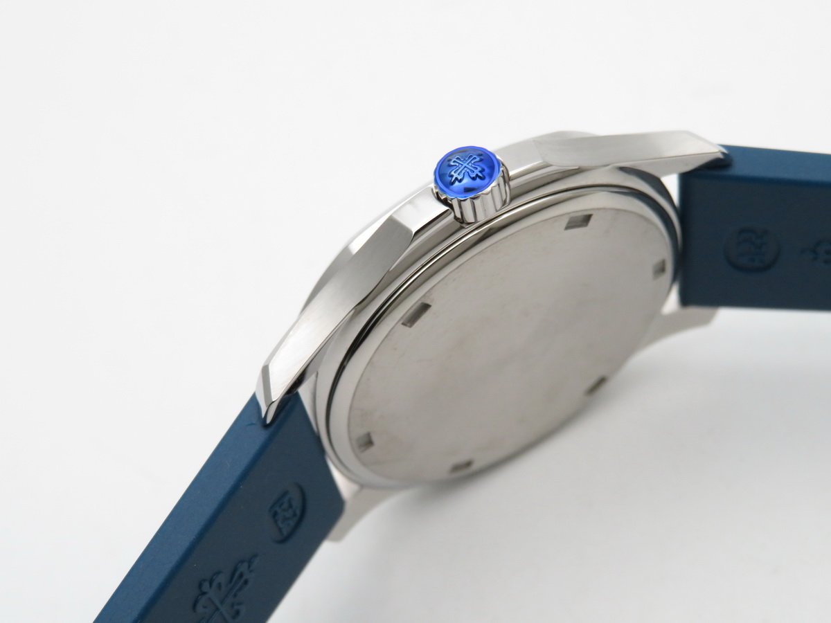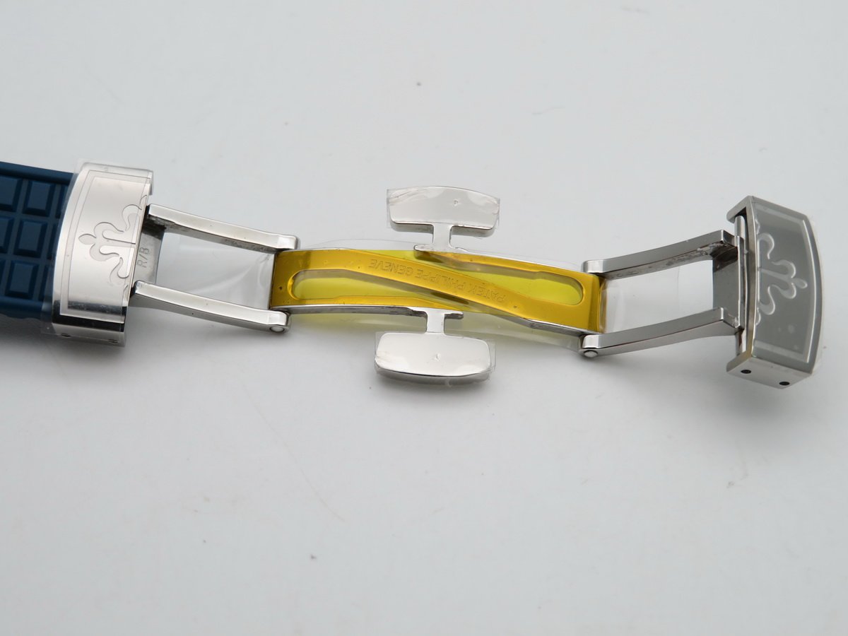 Синий каучуковый ремешок "Patek Philippe Tropical", с двойной раскладывающейся стальной застежкой Aquanaut. |