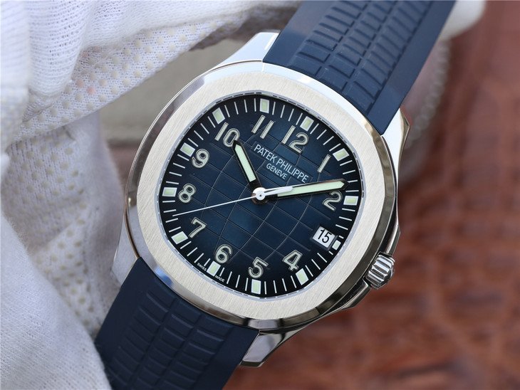 Синий каучуковый ремешок "Patek Philippe Tropical", с двойной раскладывающейся застежкой Aquanaut. |