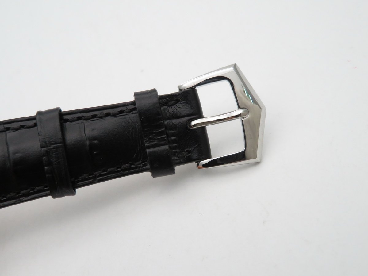Чёрный (коричневый) кожаный ремешок с простым (с помощью шипа) стальным полированным замком Patek Philippe. Система быстрой смены ремешка. |