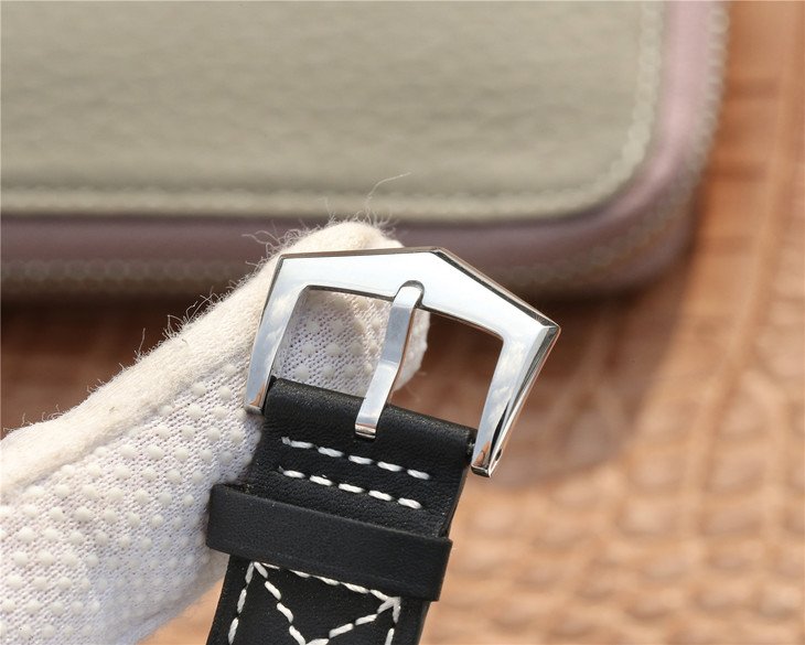 Чёрный кожаный ремешок с простым (с помощью шипа) полированным замком Patek Philippe. |