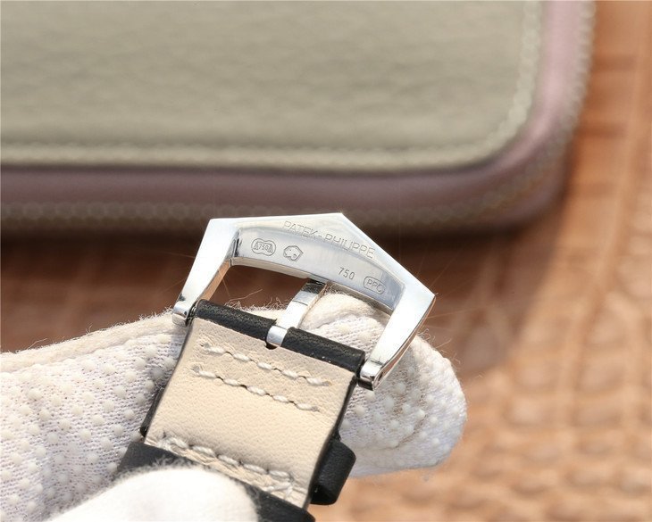 Чёрный кожаный ремешок с простым (с помощью шипа) полированным замком Patek Philippe. |