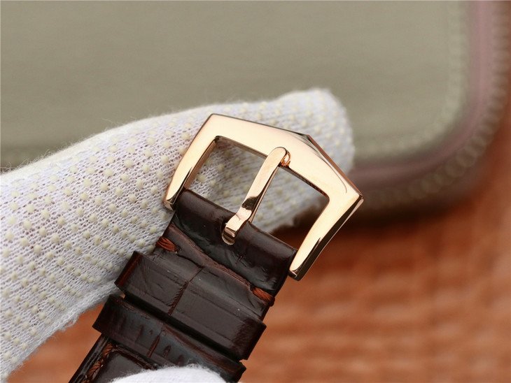 Черный кожаный ремешок с простым (с помощью шипа) стальным полированным замком Patek Philippe. Система быстрой смены ремешка. |