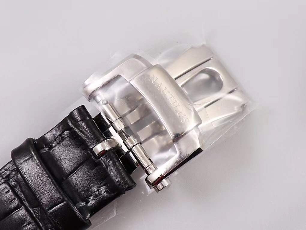 Синий кожаный ремешок, с двойной раскладывающейся застежкой Nautilus. Либо стальной браслет. |