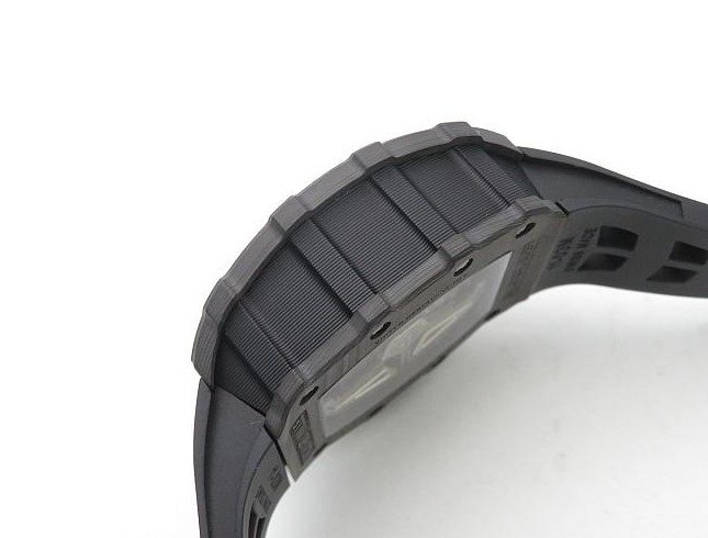 Фиксированный в одном положении 12 многогранными винтами, карбоновый безель грубой шлифовки. |