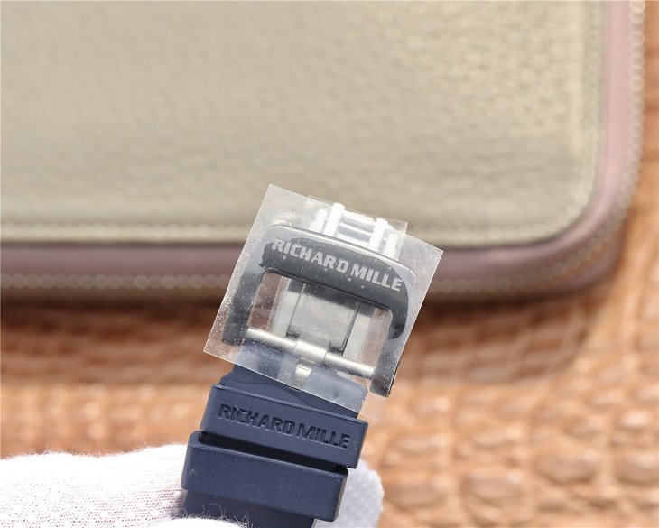 Синий каучуковый ремешок, с двойной раскладывающейся титановой застежкой Richard Mille. |