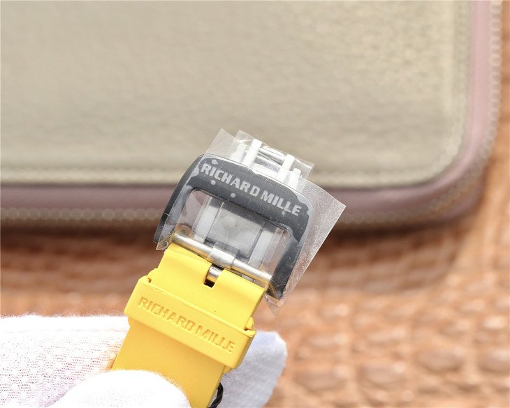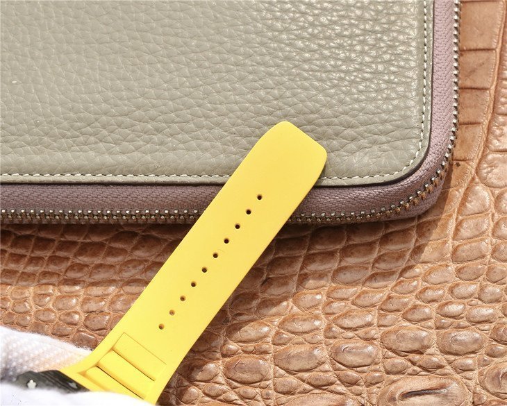 Желтый каучуковый ремешок, с двойной раскладывающейся титановой застежкой Richard Mille. |