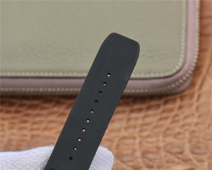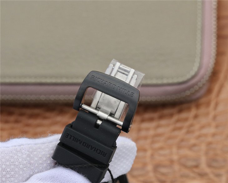 Черный каучуковый ремешок, с двойной раскладывающейся титановой застежкой Richard Mille. |