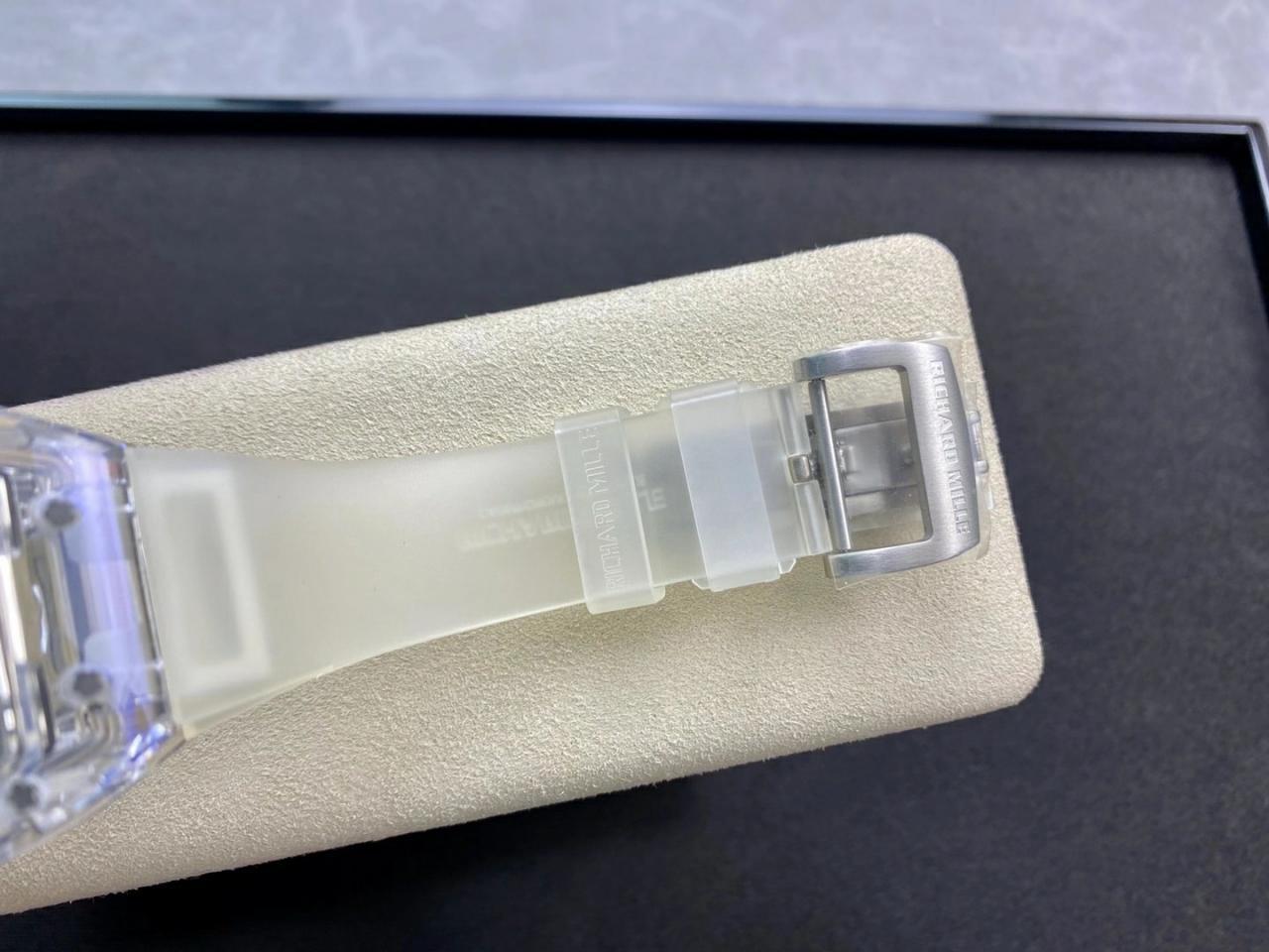 Прозрачный каучуковый ремешок, с двойной раскладывающейся титановой застежкой Richard Mille. |