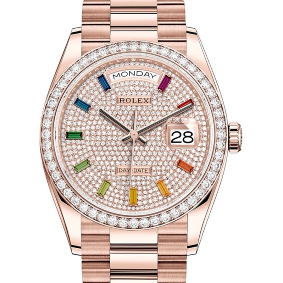 Как купить Rolex 128345RBR Diamond-paved rainbow sapphires