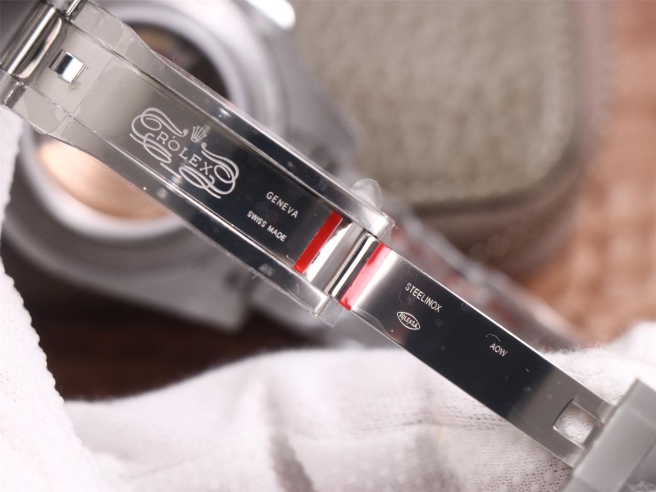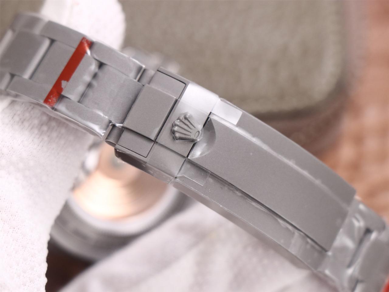 Стальной браслет Rolex Oyster из сатинированной стали 904L, с двойной раскладывающейся застёжкой Oysterlock и удлиняющим звеном Glidelock для одевания поверх гидрокостюма. Серийный номер и маркировка Rolex на конечных звеньях браслета. |