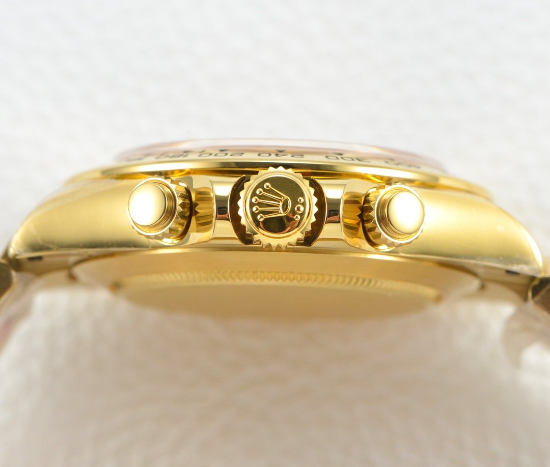 Позолоченный браслет Rolex Oyster из стали 904L, с двойной раскладывающейся застёжкой Oysterlock. |
