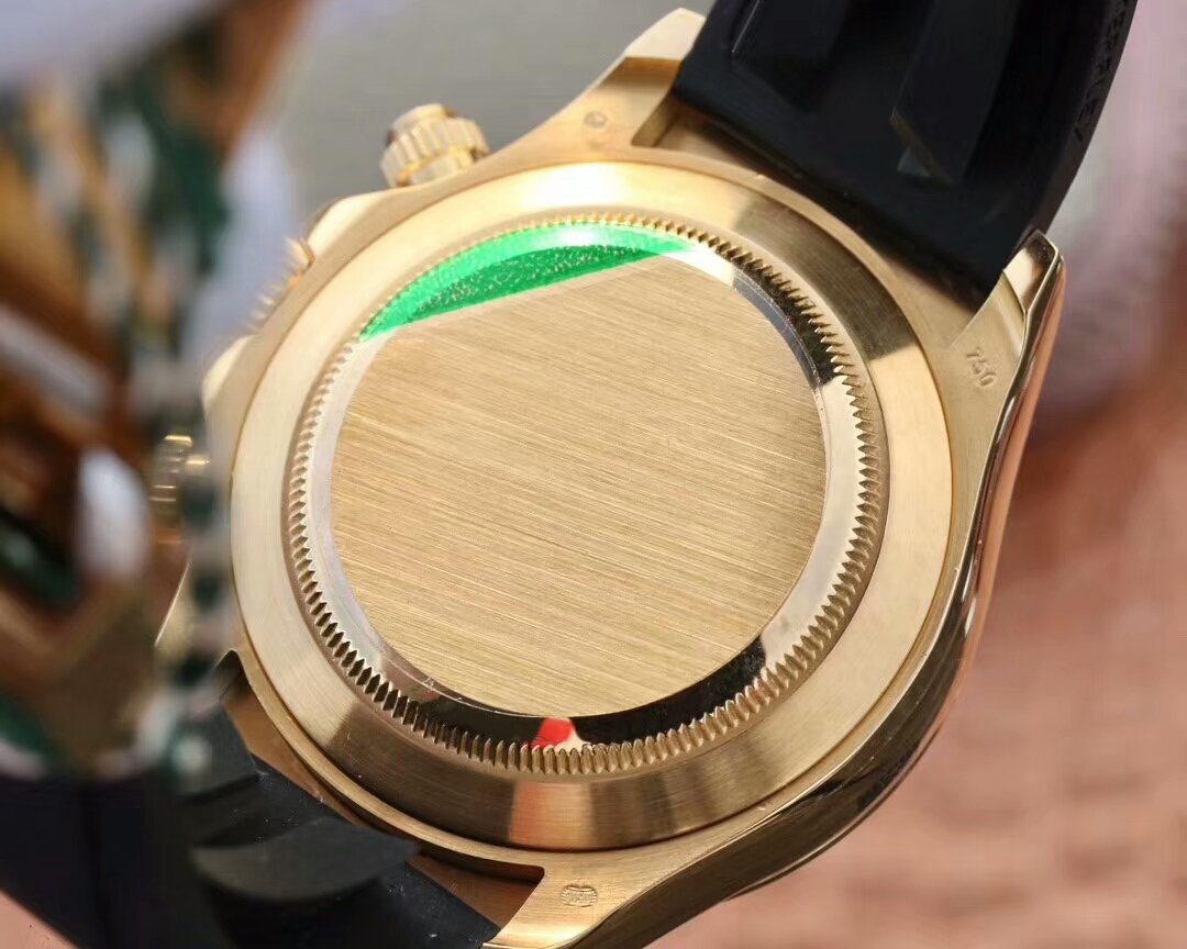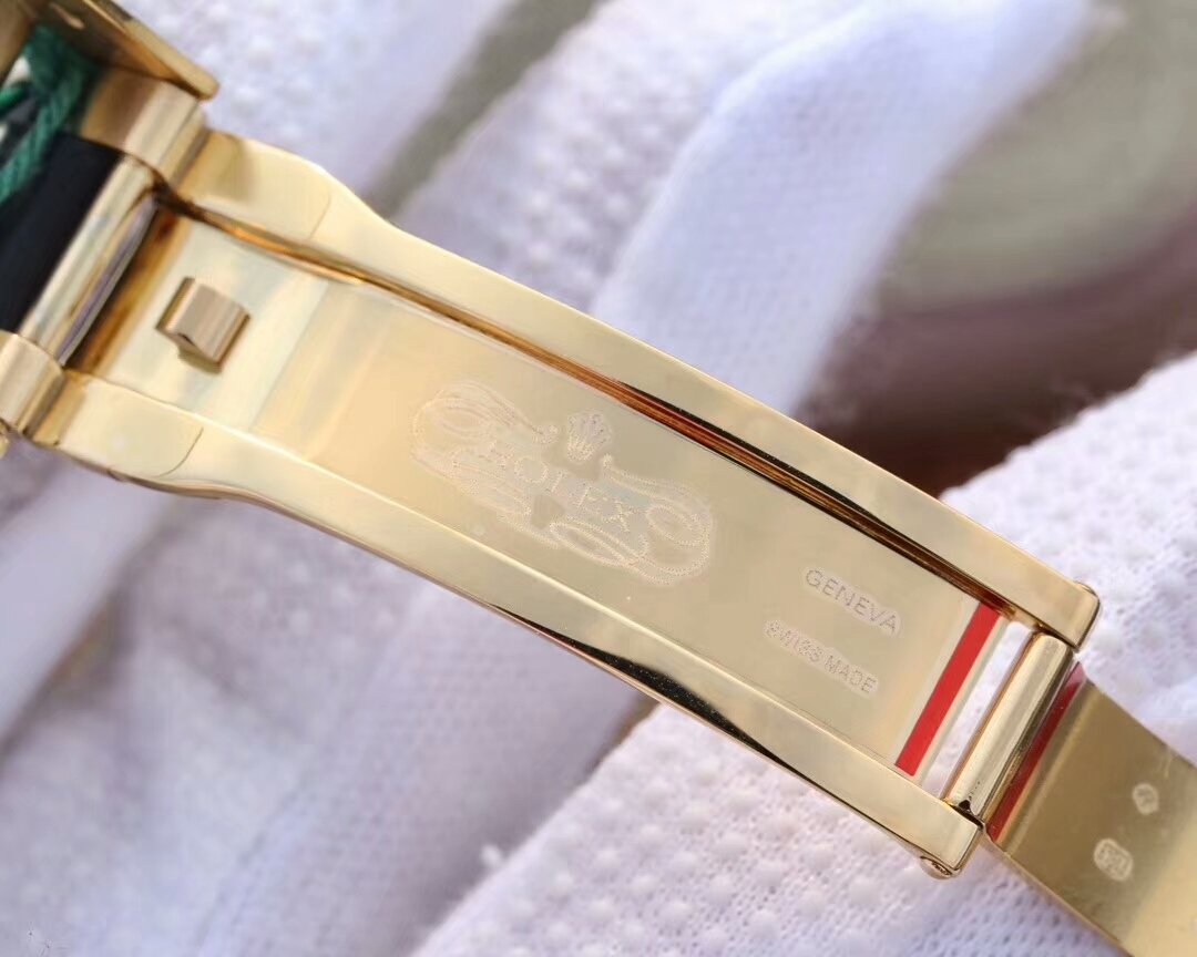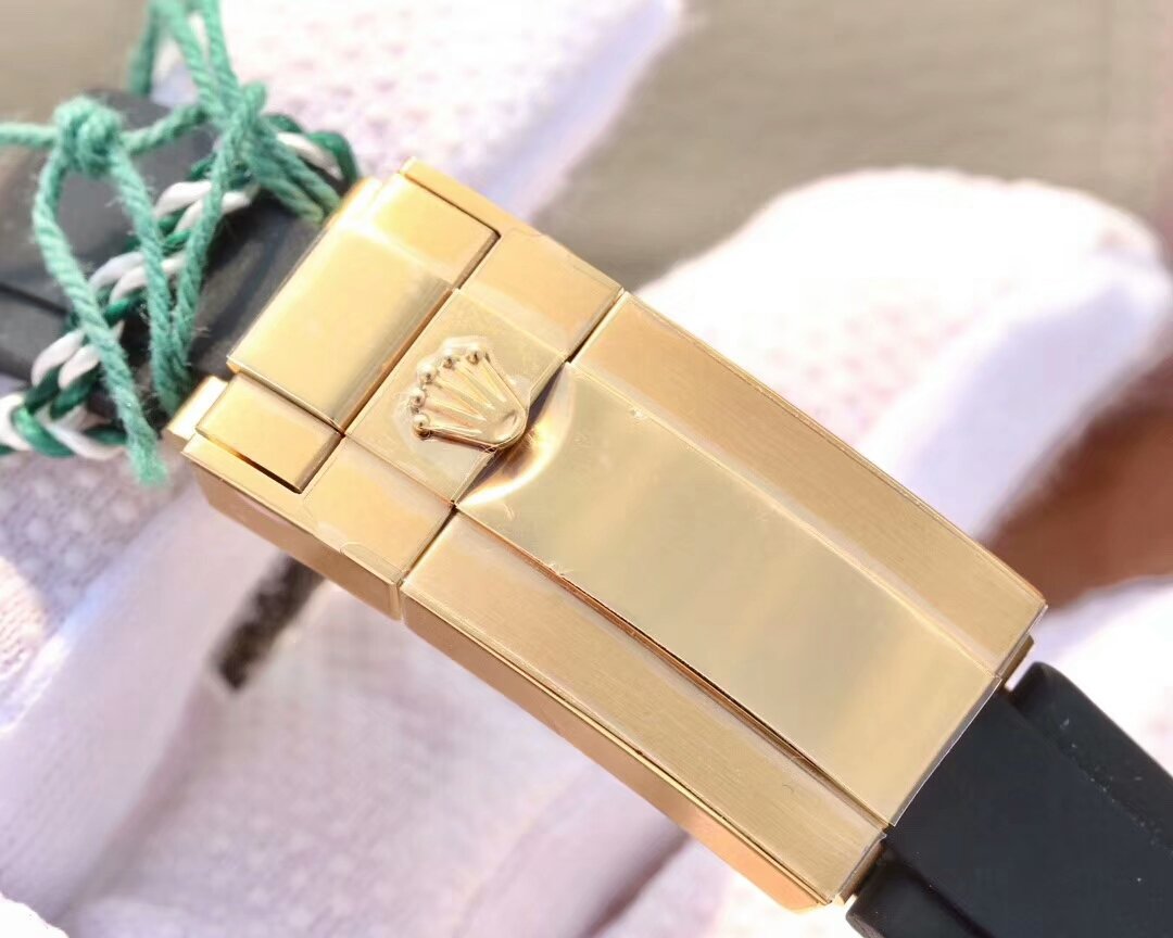 Чёрный каучуковый ремешок Rolex Oysterflex, с двойной раскладывающейся позолоченной застежкой Rolex. |