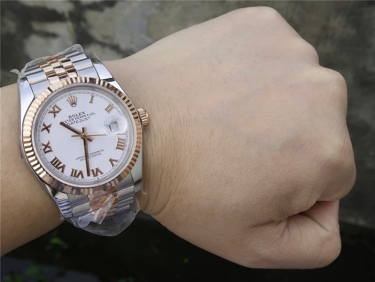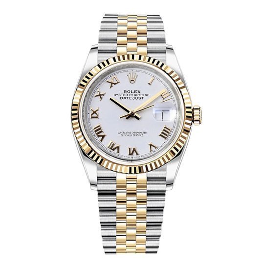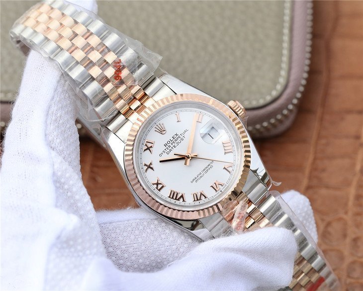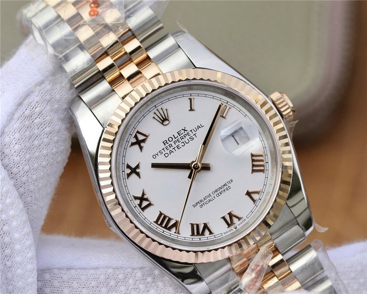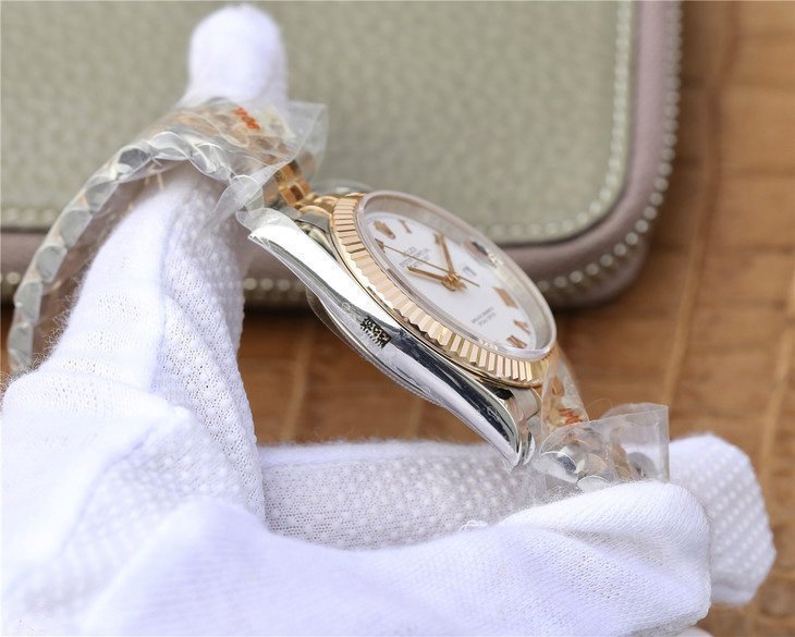 Фиксированный в одном положении, позолоченный полированный рифленный безель; Гравировка маркировки Rolex (3 короны Rolex) с внутренней стороны безеля. |