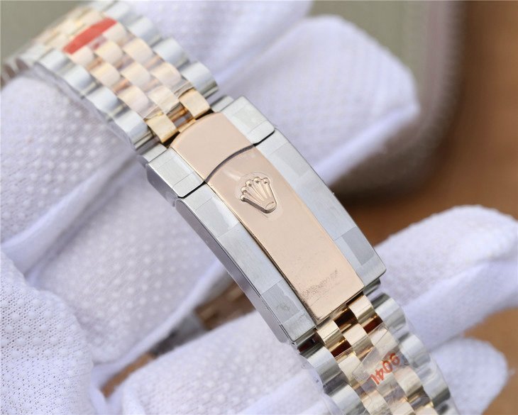 Комбинированный (сталь 904L/золото) браслет Rolex Jubilee, с двойной раскладывающейся застёжкой Oysterclasp. |