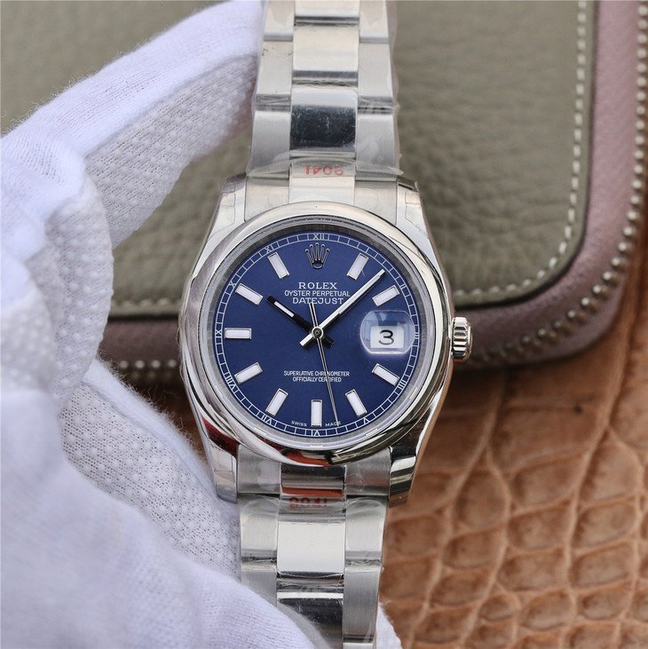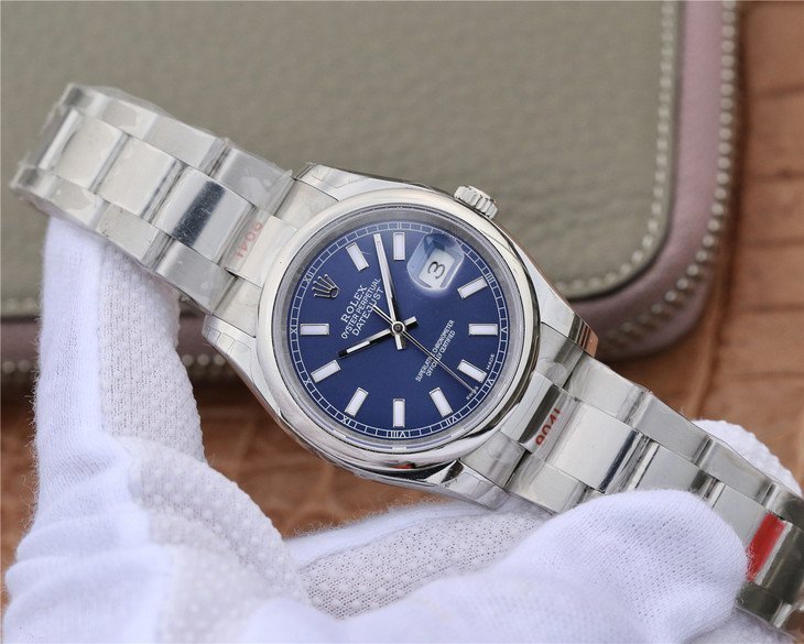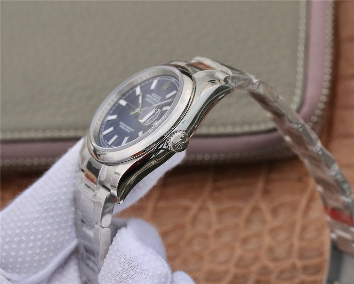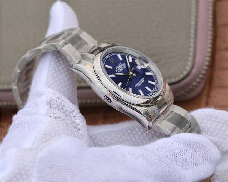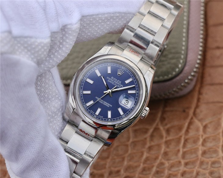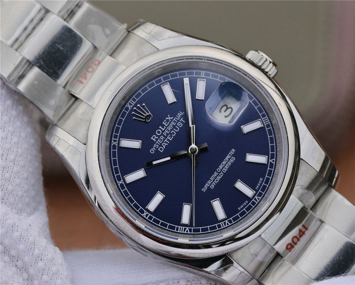Синий, переливающийся. Часовые риски и полированные стрелки, покрытые люминесцентным составом Super LumiNova С3. Окно даты в отметке на 15.00 часов под увеличительным окном 2,5. Гравировка маркировки Rolex и серийного номера на внутреннем ранте. |