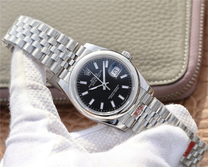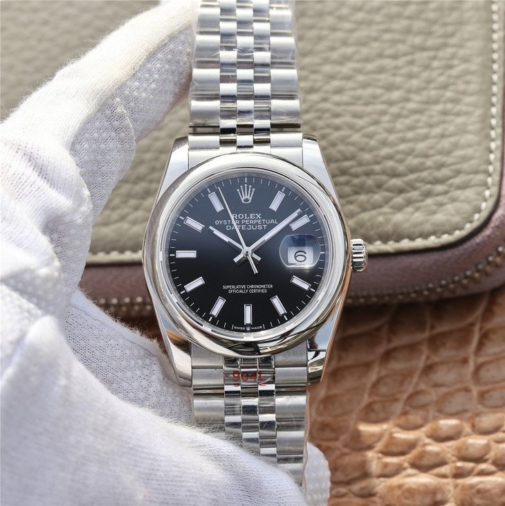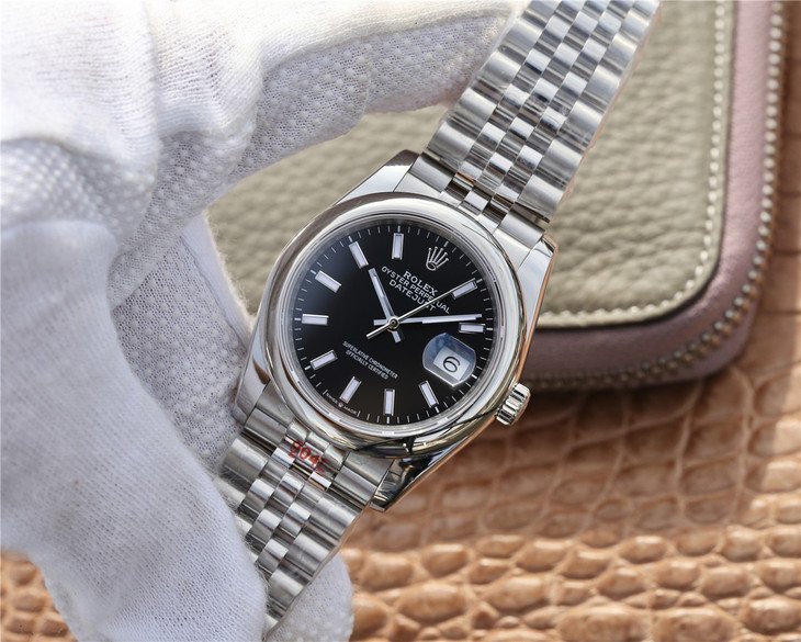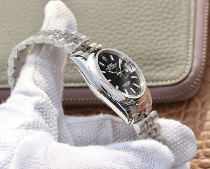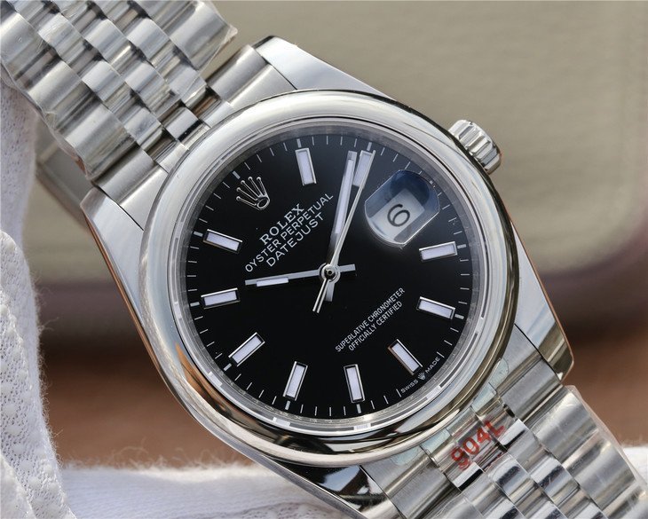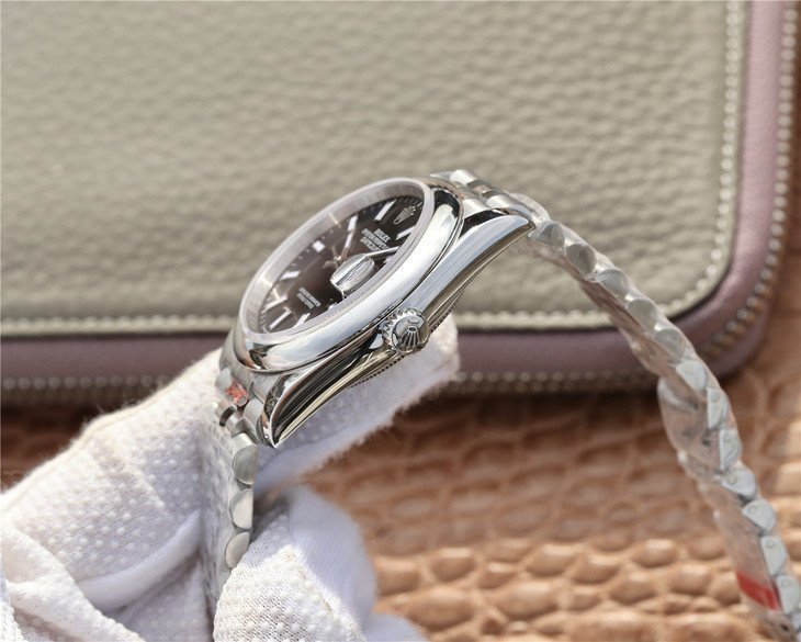 Фиксированный в одном положении, стальной полированный выпуклый безель; Гравировка маркировки Rolex (3 короны Rolex) с внутренней стороны безеля. |
