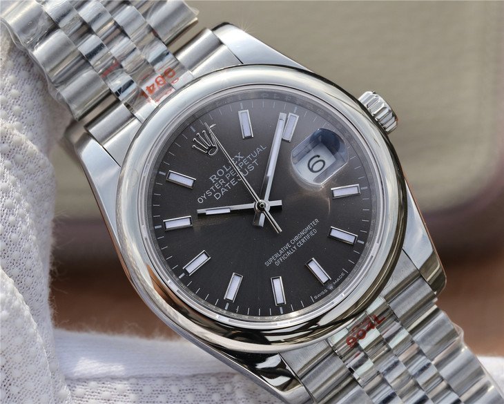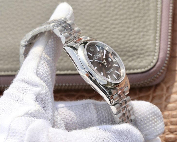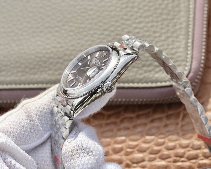 Фиксированный в одном положении, стальной полированный выпуклый безель; Гравировка маркировки Rolex (3 короны Rolex) с внутренней стороны безеля. |