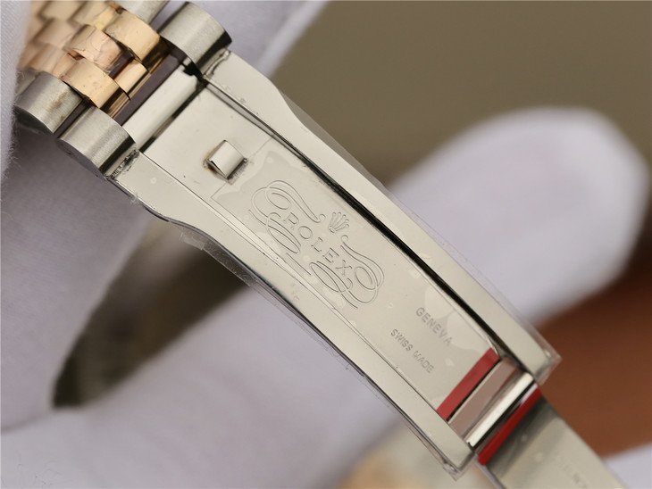 Комбинированный (сталь/золото) браслет Rolex Jubilee из стали марки 904L, с двойной раскладывающейся застёжкой Oysterclasp. Либо стальной браслет Rolex Oyster. Серийный номер и маркировка Rolex на конечных звеньях браслета и между дужками корпуса. |