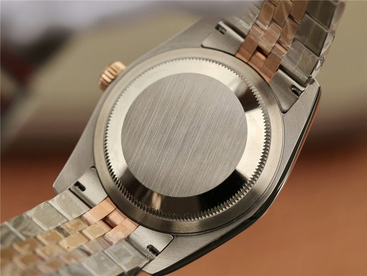Фиксированный в одном положении, позолоченный полированный рифленный безель; Гравировка маркировки Rolex (3 короны Rolex) с внутренней стороны безеля. |