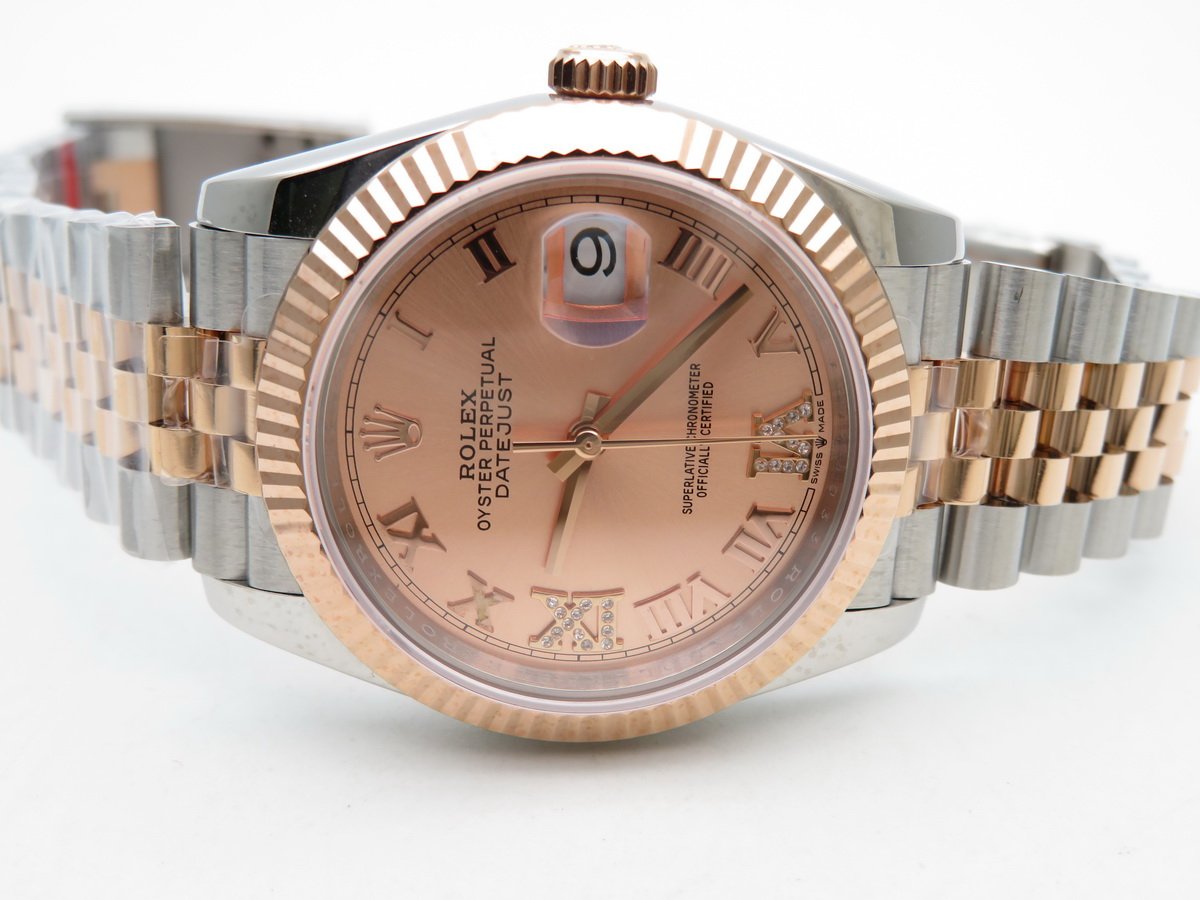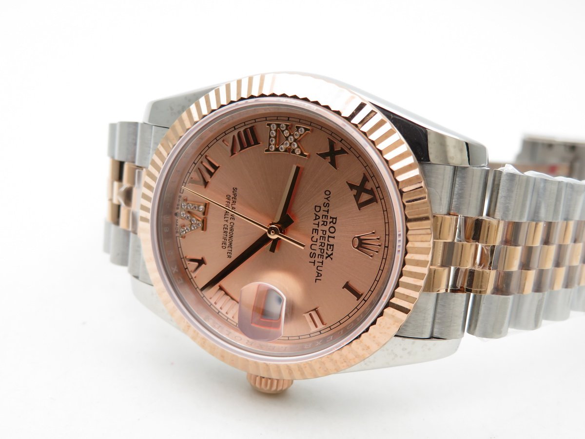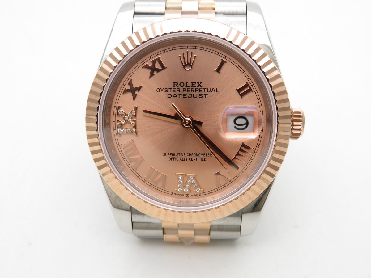 Позолоченный, переливающийся. Позолоченные, полированные римские часовые индексы и стрелки. Окно даты, расположенное в отметке на 15.00 часов под увеличительным окном 2,5. Гравировка маркировки Rolex и серийного номера Rolex на внутреннем ранте. |