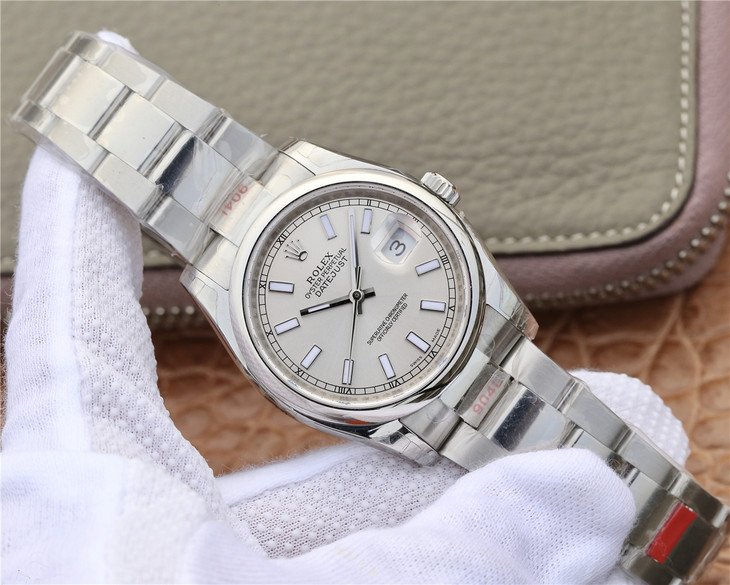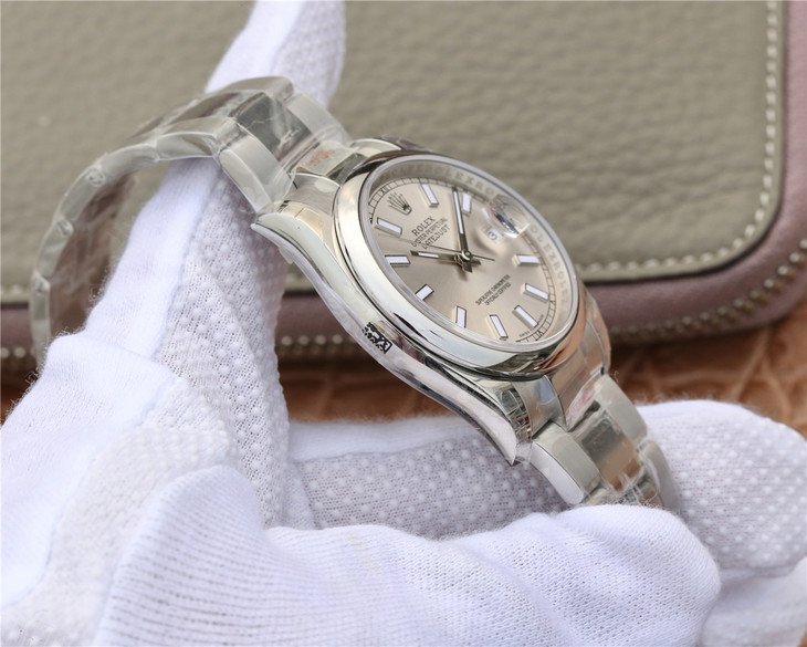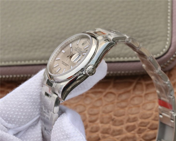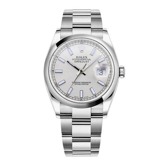Фиксированный в одном положении, стальной полированный выпуклый безель; Гравировка маркировки Rolex (3 короны Rolex) с внутренней стороны безеля. |