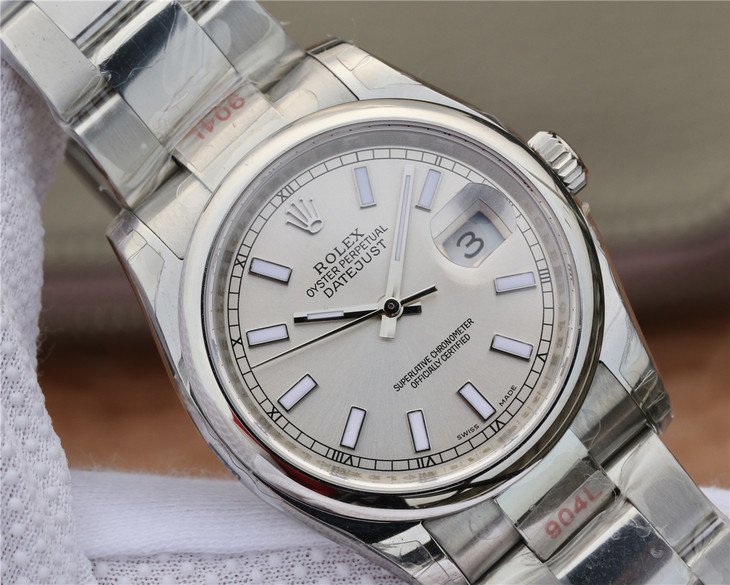 Белый (эмаль) Часовые риски и полированные стрелки, покрытые люминесцентным составом Super LumiNova С3. Окно даты в отметке на 15.00 часов под увеличительным окном 2,5. Гравировка маркировки Rolex и серийного номера на внутреннем ранте. |