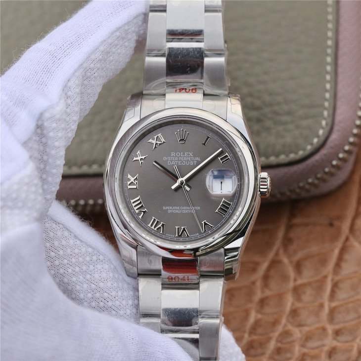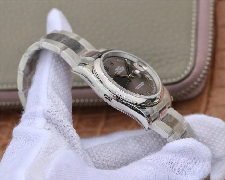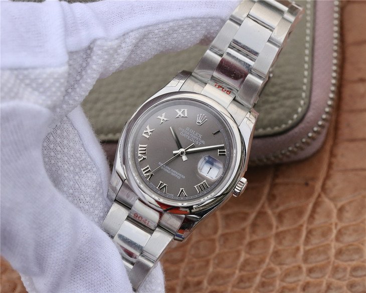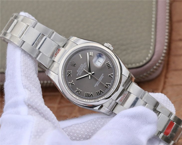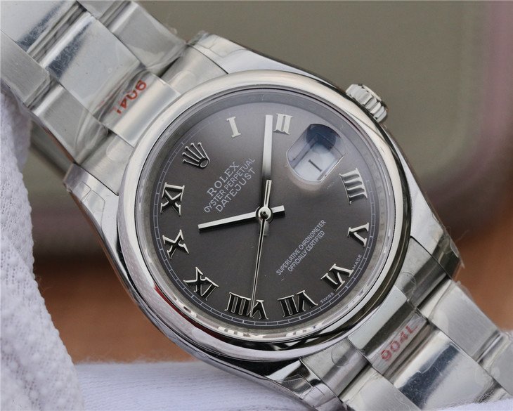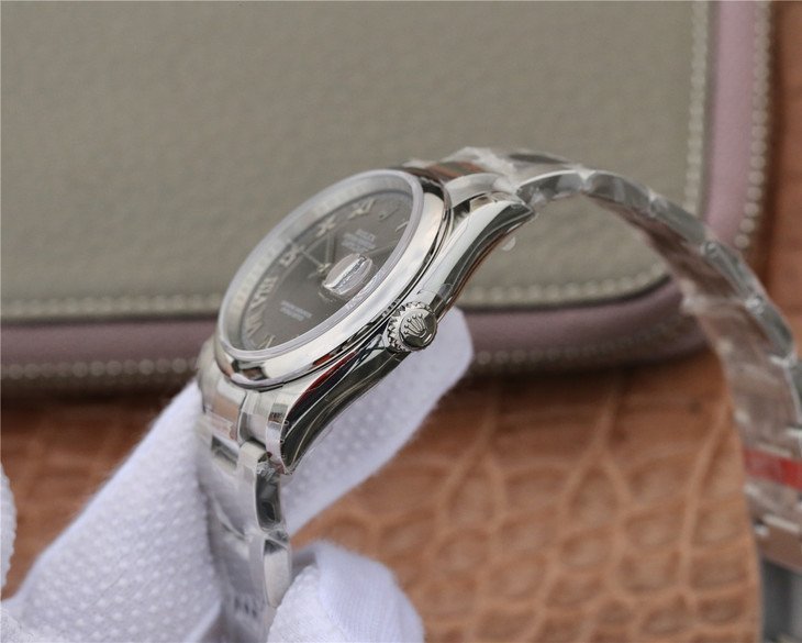 Родиум, переливающийся. Полированные римские часовые индексы и стрелки. Окно даты в отметке на 15.00 часов под увеличительным окном 2,5. Гравировка маркировки Rolex и серийного номера Rolex на внутреннем ранте. |