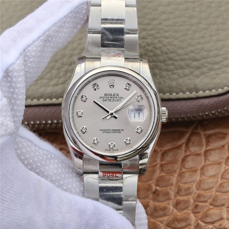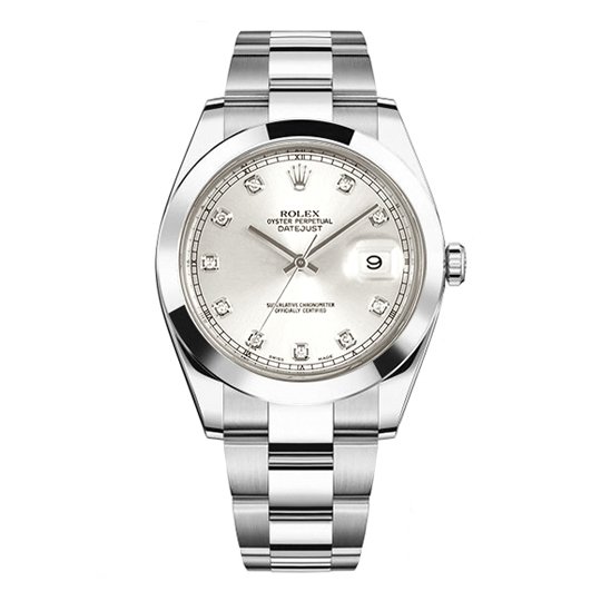 Белый. Часовые риски, инкрустированные белыми сапфирами. Окно даты в отметке на 15.00 часов под увеличительным окном 2,5. Гравировка маркировки Rolex и серийного номера на внутреннем ранте. |