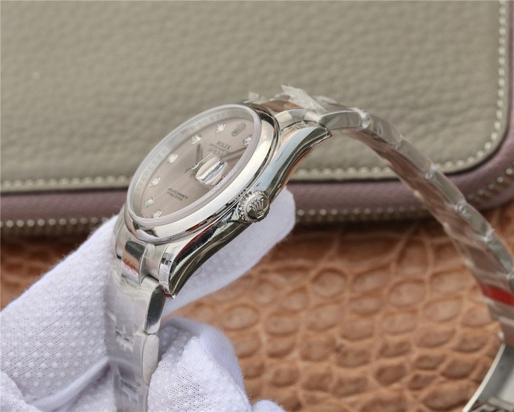 Фиксированный в одном положении, стальной полированный безель; Гравировка маркировки Rolex (3 короны Rolex) с внутренней стороны безеля. |