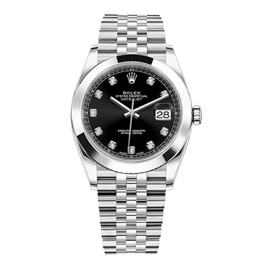 Черный. Часовые риски, инкрустированные белыми сапфирами (МОР). Окно даты в отметке на 15.00 часов под увеличительным окном 2,5. Гравировка маркировки Rolex и серийного номера Rolex на внутреннем ранте. |