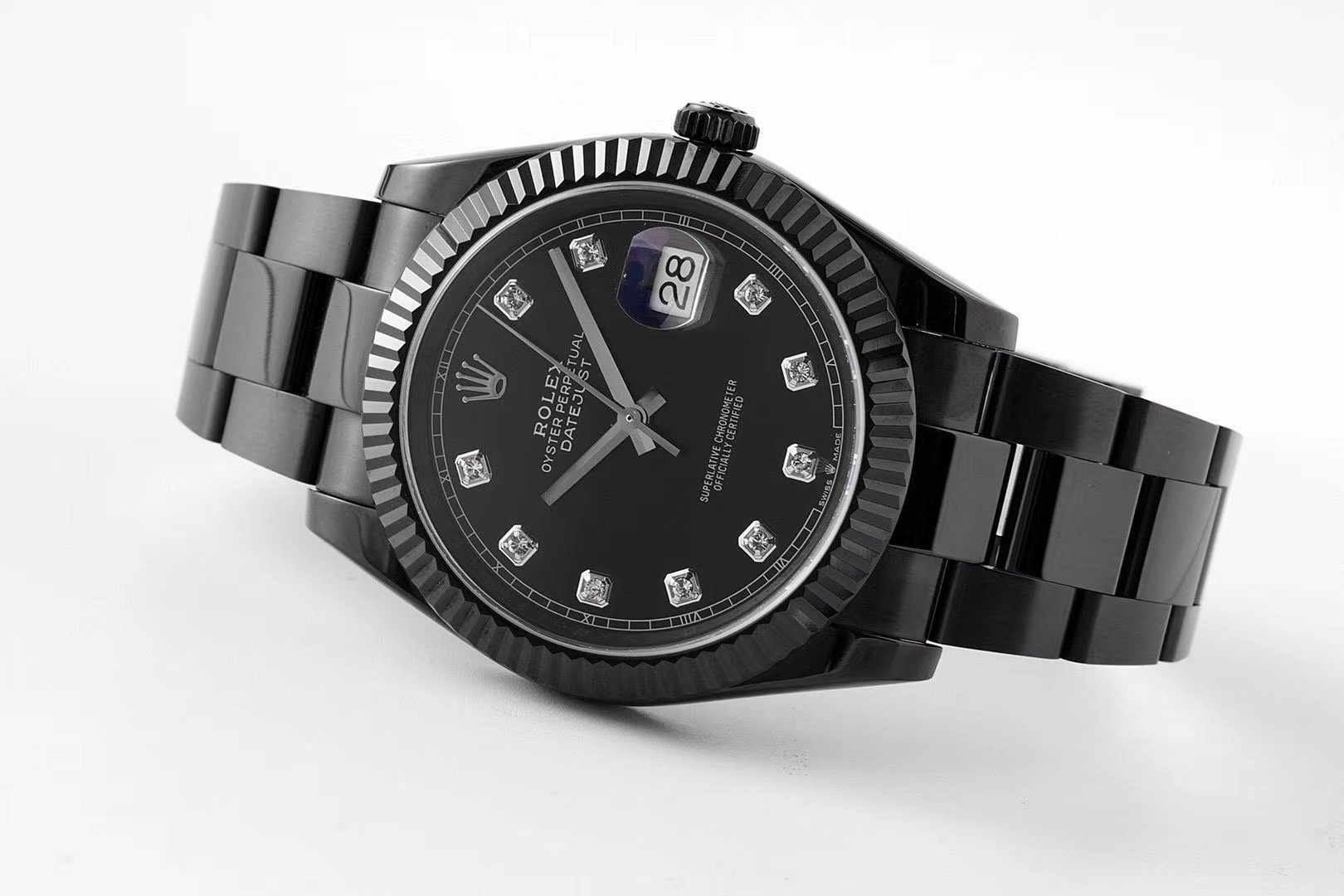 Черный. Камни (фианиты), покрытые люминесцентным составом Super LumiNova С3. Окно даты в отметке на 15.00 часов под увеличительным окном 2,5. Гравировка маркировки Rolex и серийного номера Rolex на внутреннем ранте. |