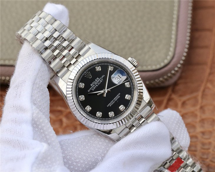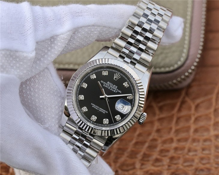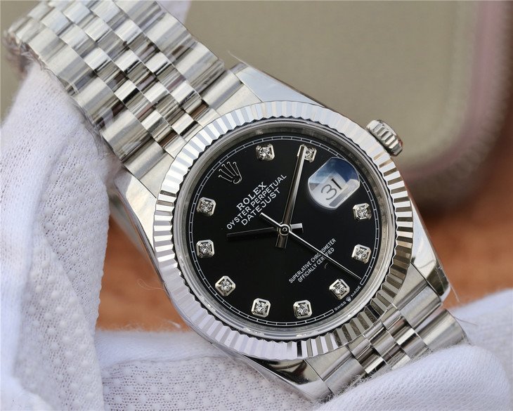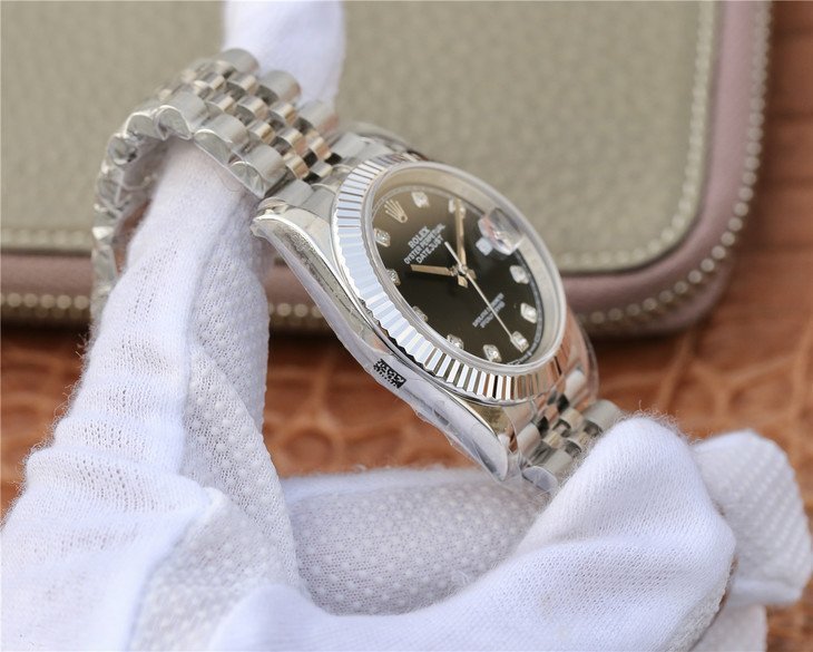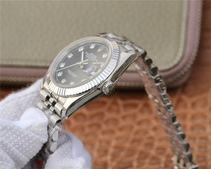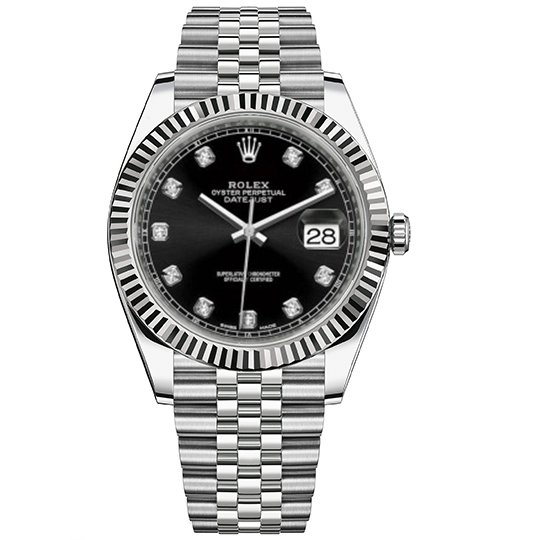 Черный. Часовые риски, инкрустированные белыми сапфирами (МОР). Окно даты в отметке на 15.00 часов под увеличительным окном 2,5. Гравировка маркировки Rolex и серийного номера Rolex на внутреннем ранте. |