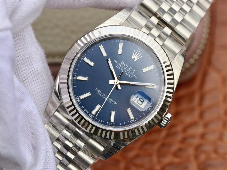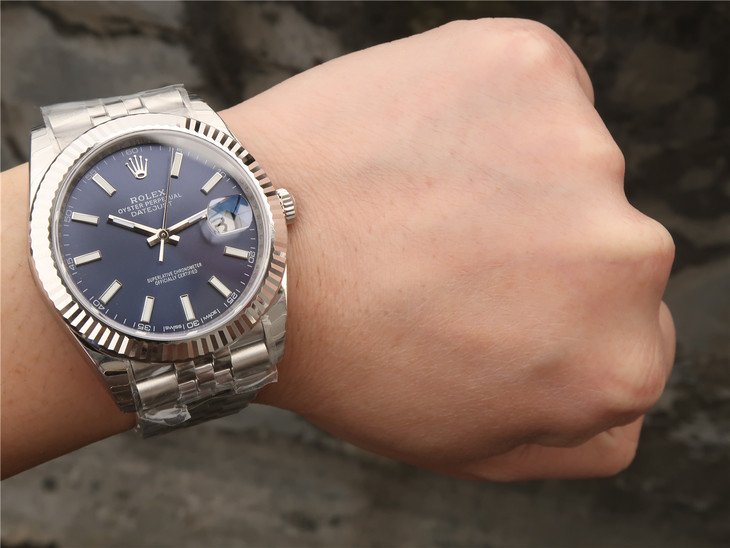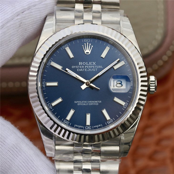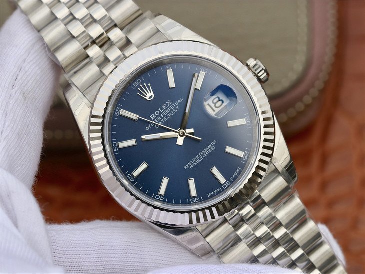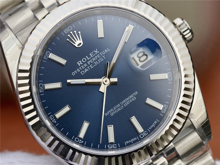 Синий. Часовые риски и полированные стрелки, покрытые люминесцентным составом Super LumiNova С3. Окно даты в отметке на 15.00 часов под увеличительным окном 2,5. Гравировка маркировки Rolex и серийного номера Rolex на внутреннем ранте. |