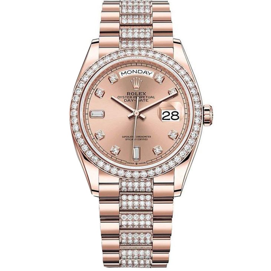 Как купить Rolex Day-Date 36 Everose gold Bezel set with diamond President Bracelet 128345rbr-0020