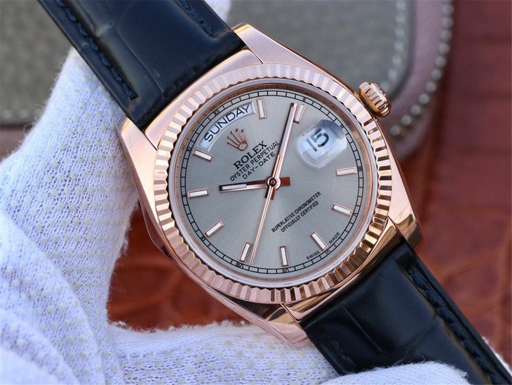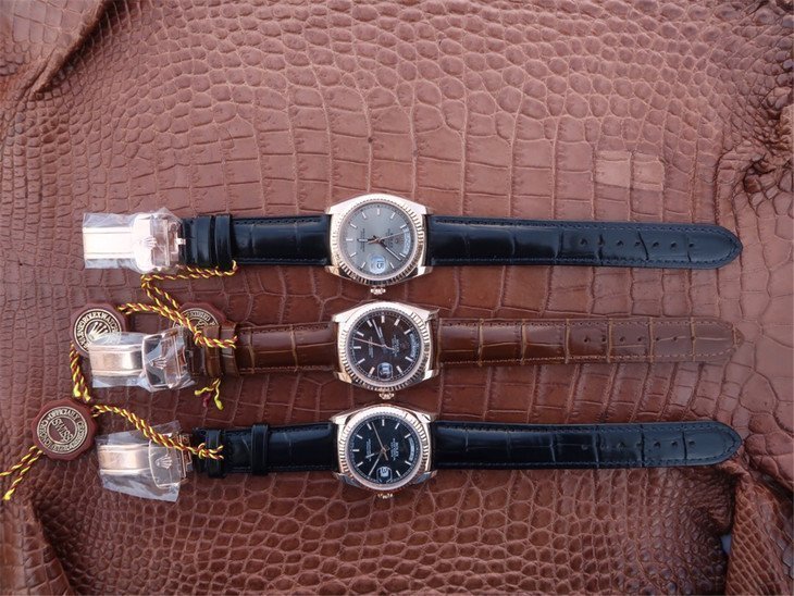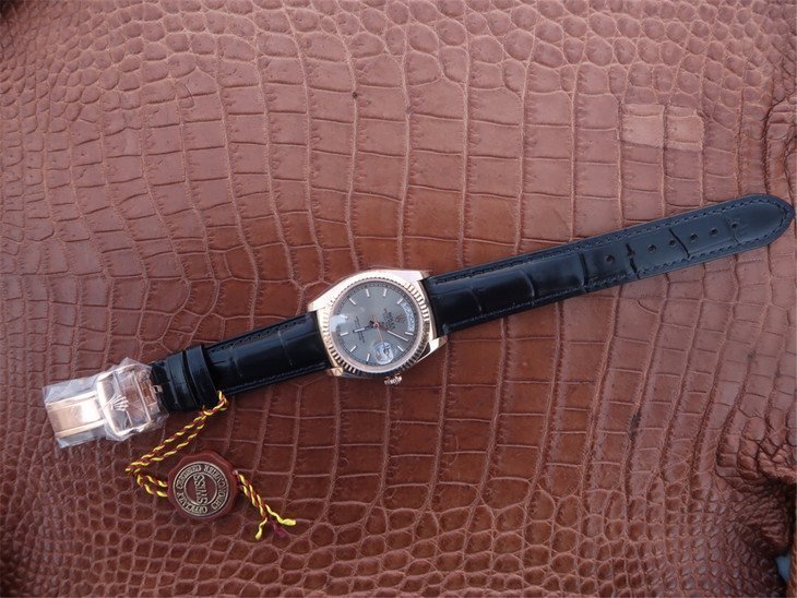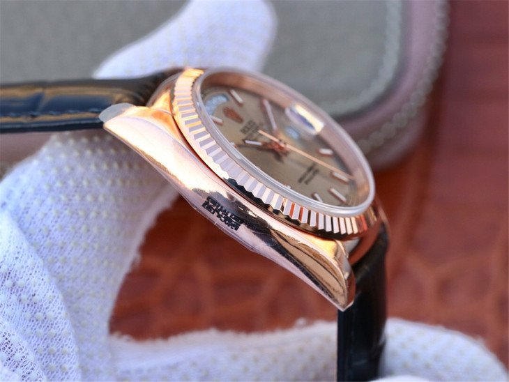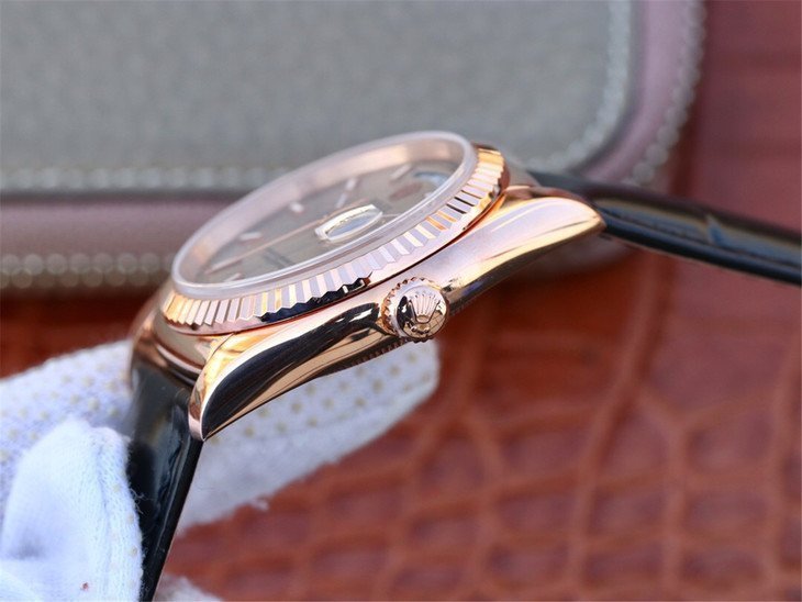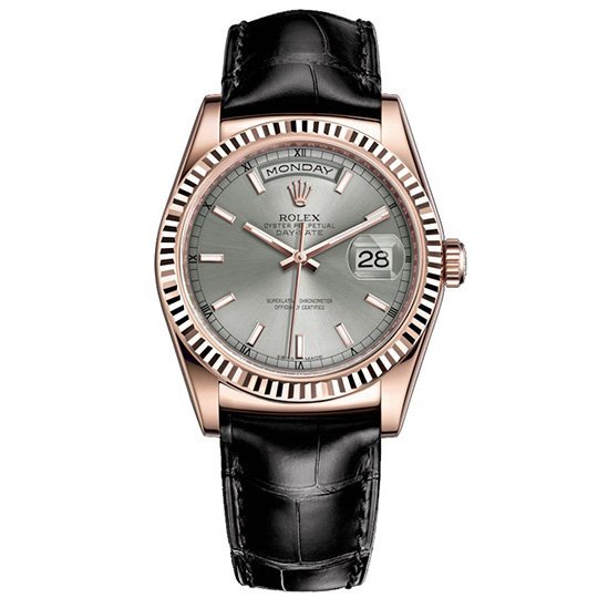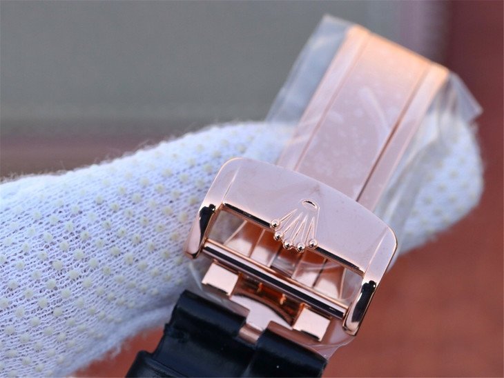 Черный кожаный ремешок, с двойной раскладывающейся золотой застежкой Crownclasp. |