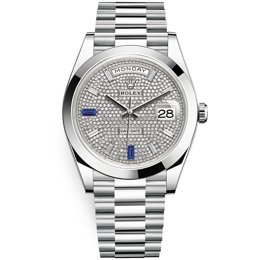 Стальной браслет Rolex President, с двойной раскладывающейся застежкой Crownclasp. |
