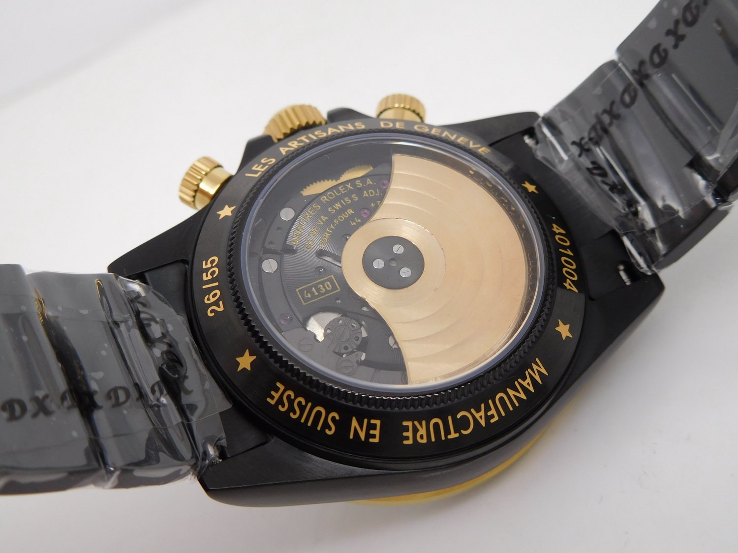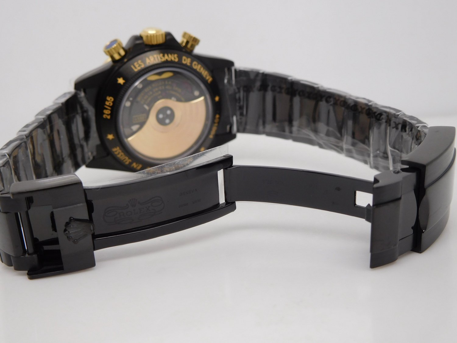 Стальной браслет Rolex Oyster, покрытый черным DLC напылением + черный кожаный ремешок из толстой телячьей кожи с напульсником. |