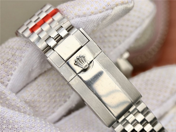 Стальной браслет Rolex Jubilee из стали марки 904L, с двойной раскладывающейся застёжкой Oysterclasp. Серийный номер и маркировка Rolex на конечных звеньях браслета. |