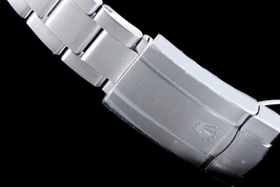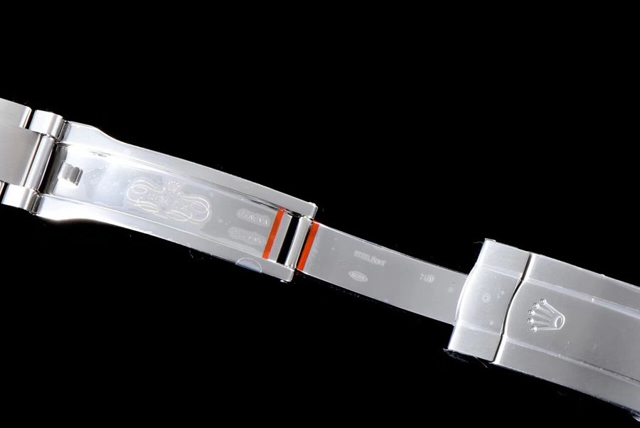Стальной браслет Rolex Oyster из сатинированной стали 904L, с двойной раскладывающейся застёжкой Oysterclasp. Серийный номер и маркировка Rolex на конечных звеньях браслета.