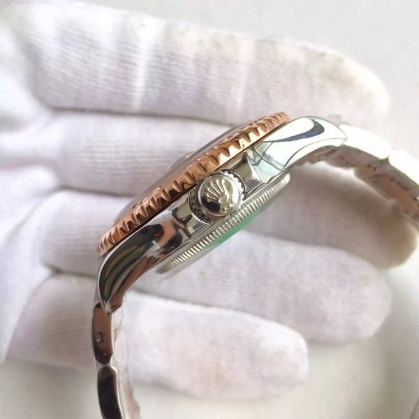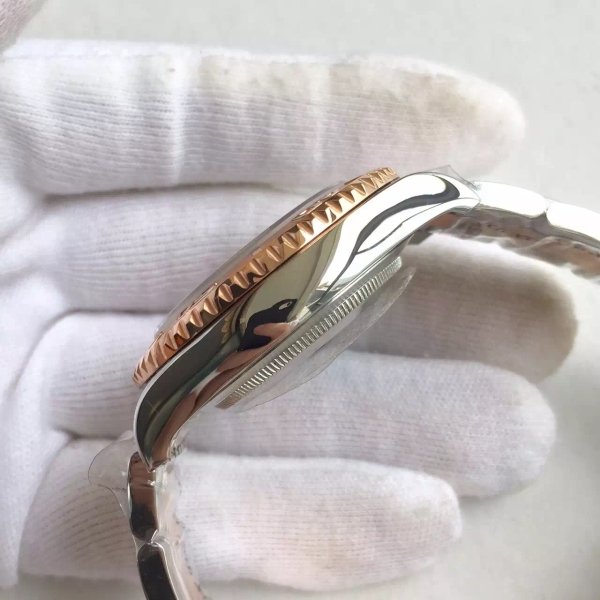 Коричневый, переливающийся. Позолоченные часовые метки и стрелки, покрытые люминесцентным составом Super LumiNova С3. Окно даты в отметке на 15.00 часов под увеличительным окном 2,5. Гравировка маркировки Rolex и серийного номера Rolex на внутреннем ранте |