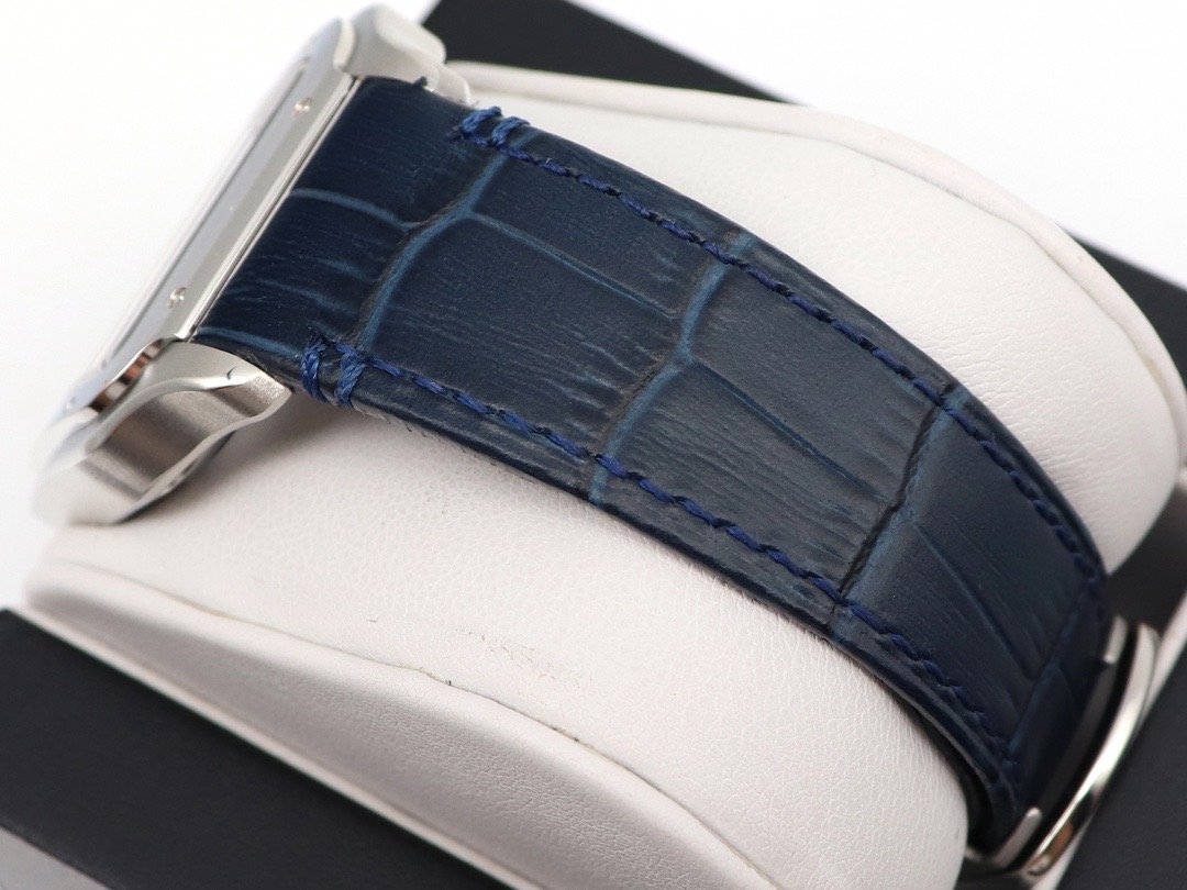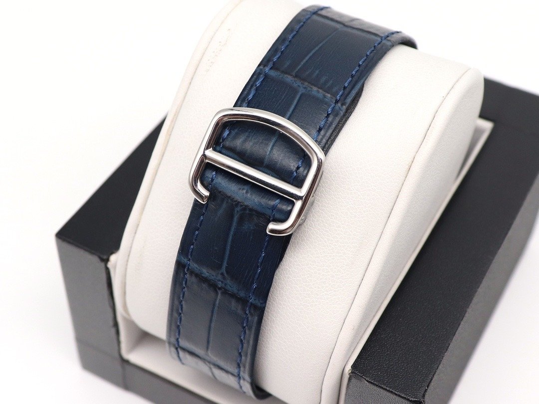 Синий кожаный ремешок, с простым (с помощью шипа) замком Cartier. |